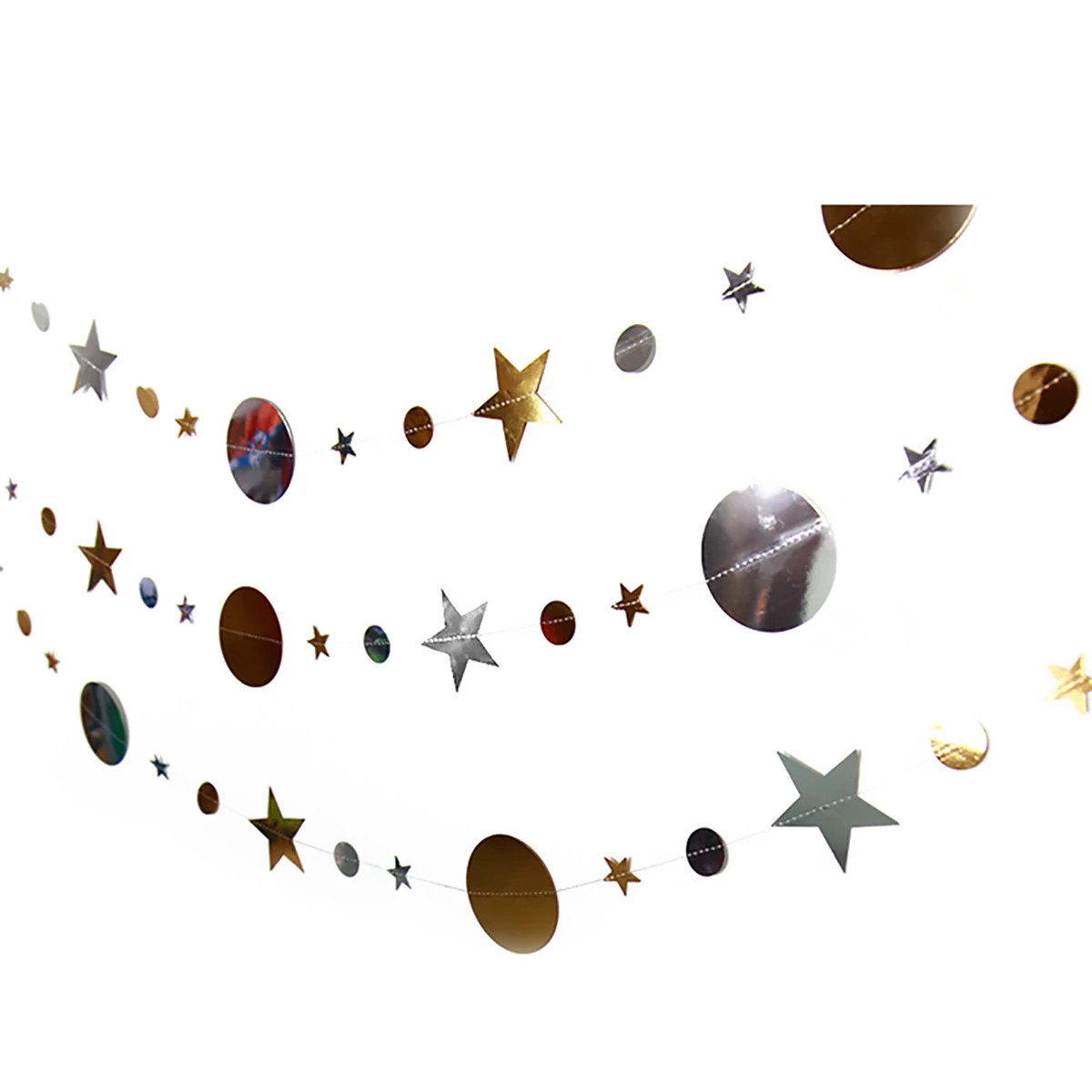 4 м зеркальная бумага Звезда Луна круглая Золотая гирлянда флэш-баннер с днем рождения свадьбы вечеринки ребенка пользу занавески украшения поставки