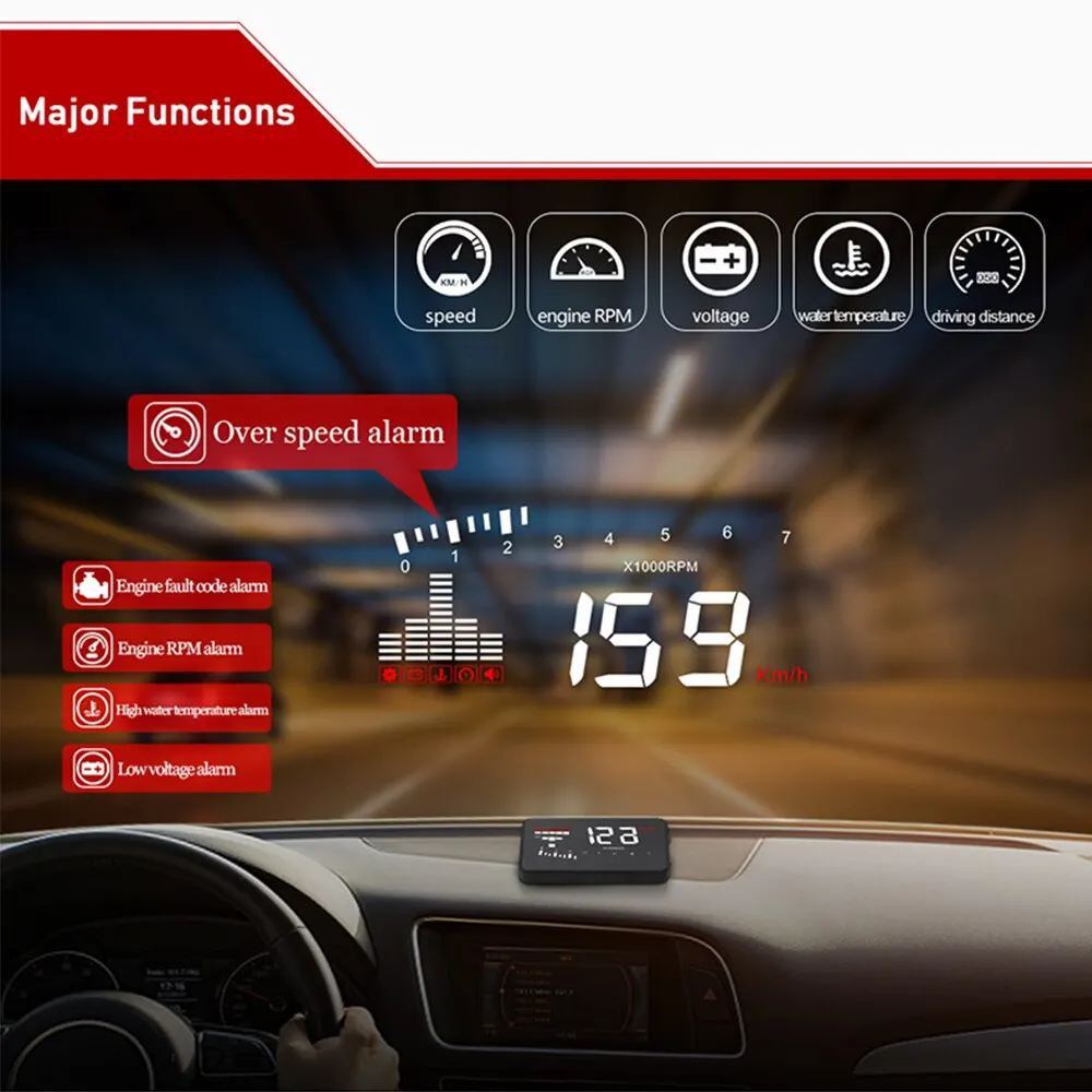 * В: что такое HUD (Head-Up display)? HUD (головной дисплей) может проецировать информацию о движении на лобовом стекле, и держать глаза водителя всегда на дороге во время вожденияДляБолее безопасное вождение. OBD2 HUD:Подключается к автомобилю с помощью OBD кабеля, подходит для большинстваАвтомобилиПосле 2003 лет в США/Европе/Австралии и после 2007 лет в Азии.