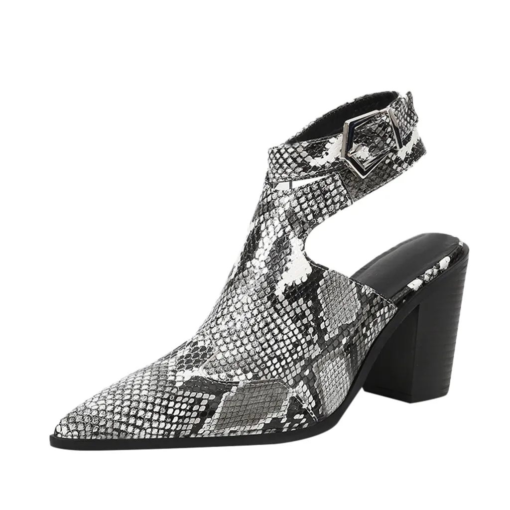 Женская обувь; модные туфли из змеиной кожи с острым носком на высоком каблуке; большие размеры; ботинки в римском стиле с пряжкой