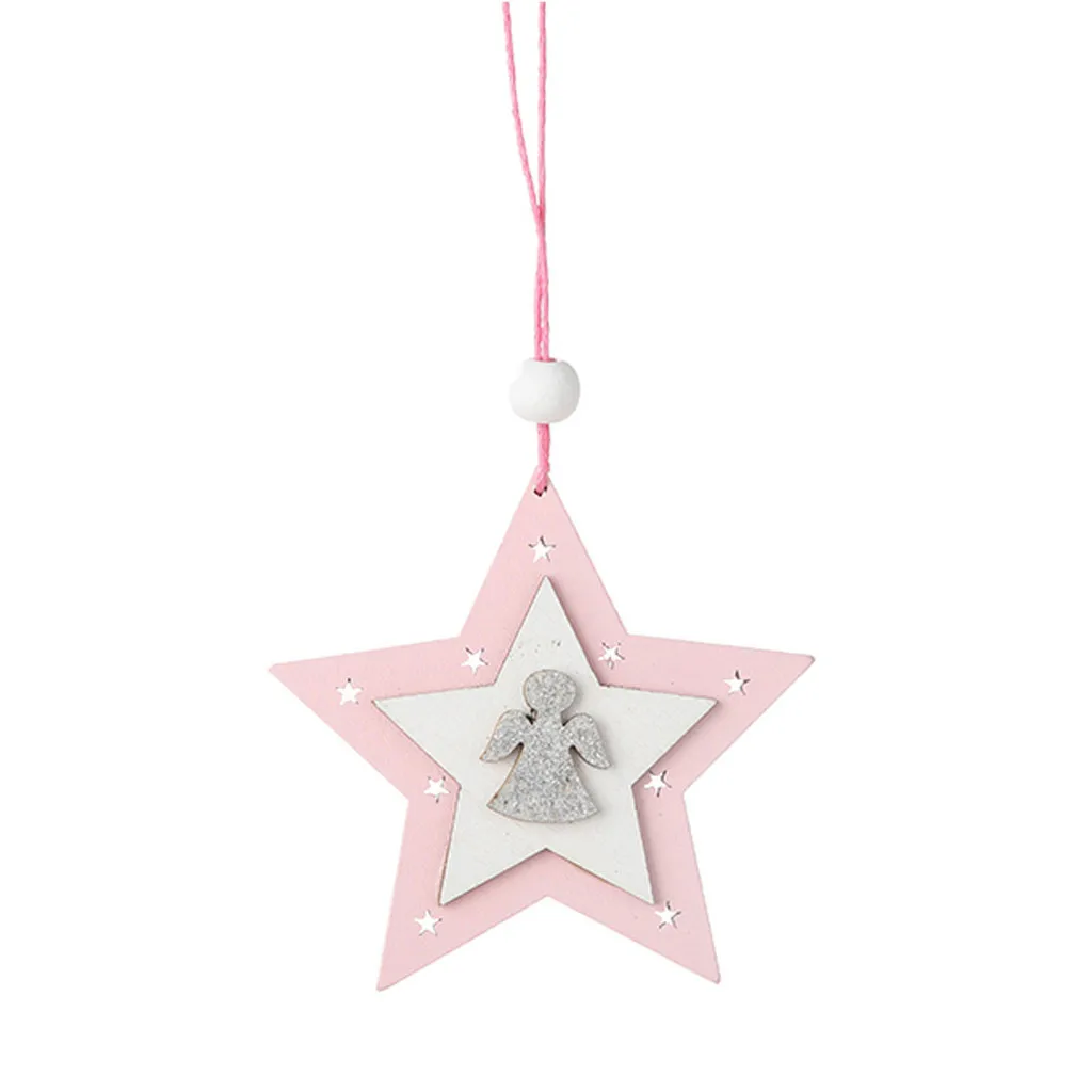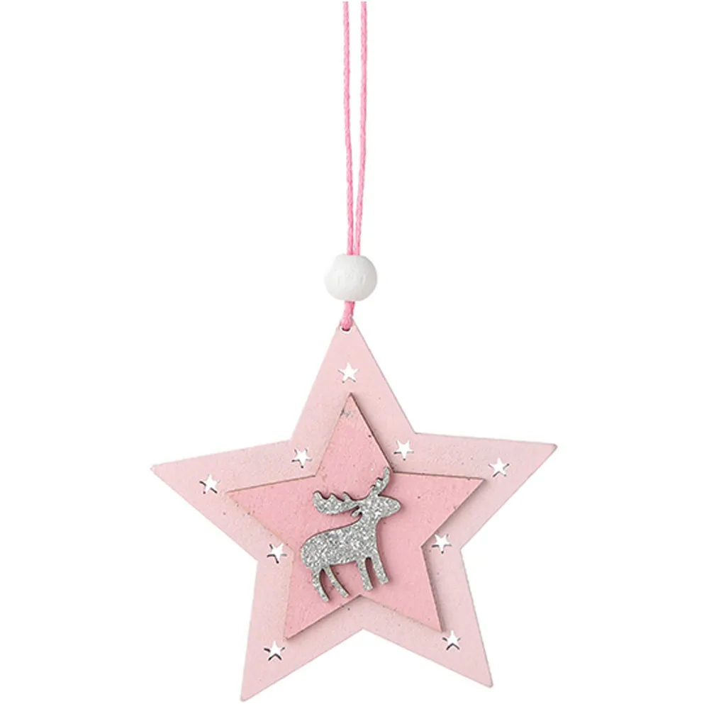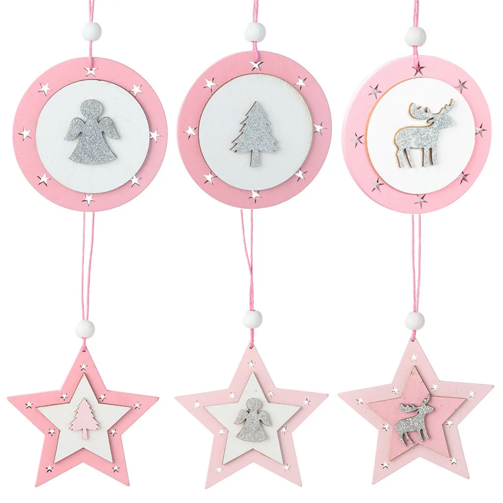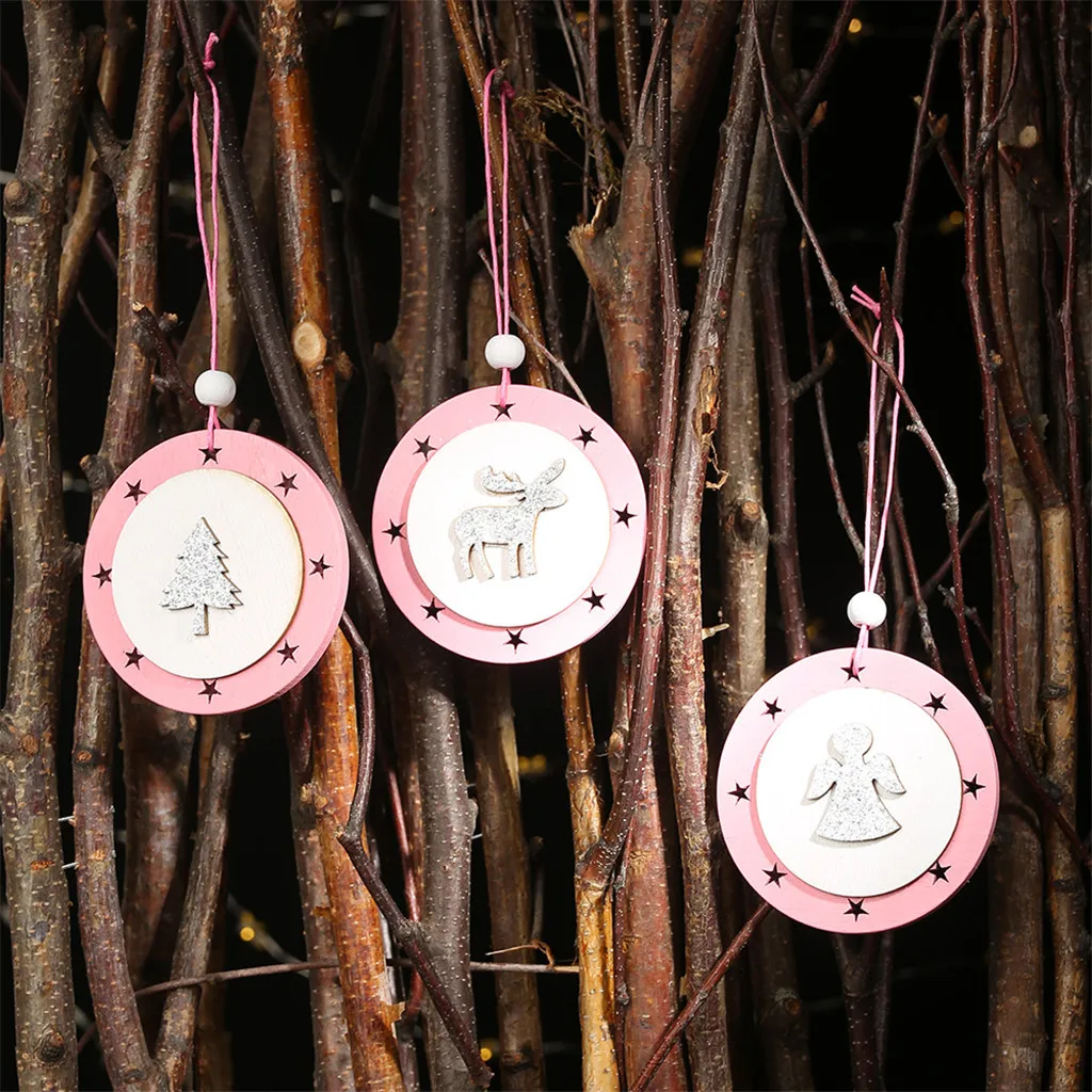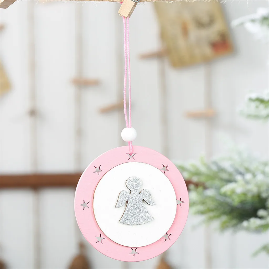 Рождественская розовая деревянная пятиконечная звезда Подвеска креативная маленькая елка подвеска