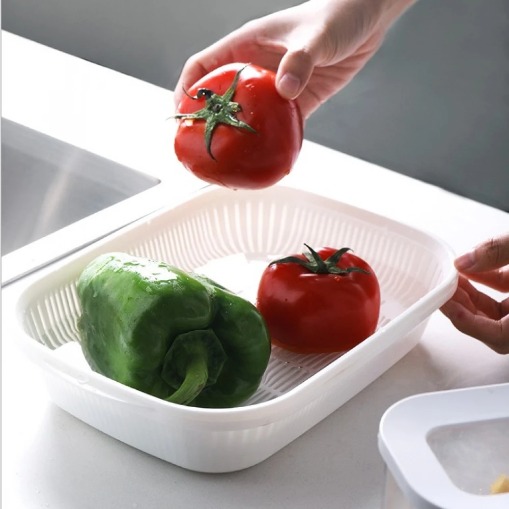 Product Name: vegetable and fruit cleaning storage double drain basket