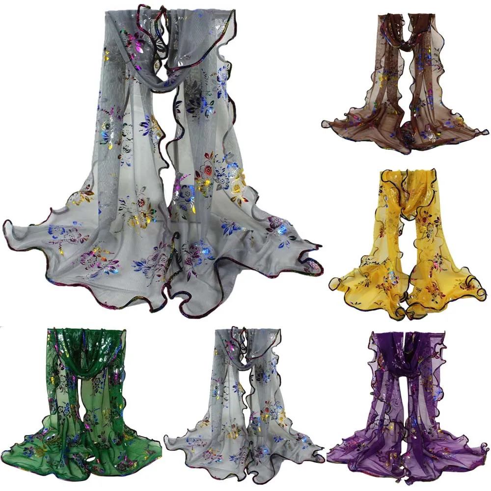 1 шт. Для женщин яркий цветочный принт Длинный кружевной шарф, мягкая шаль, палантин, Пашмина