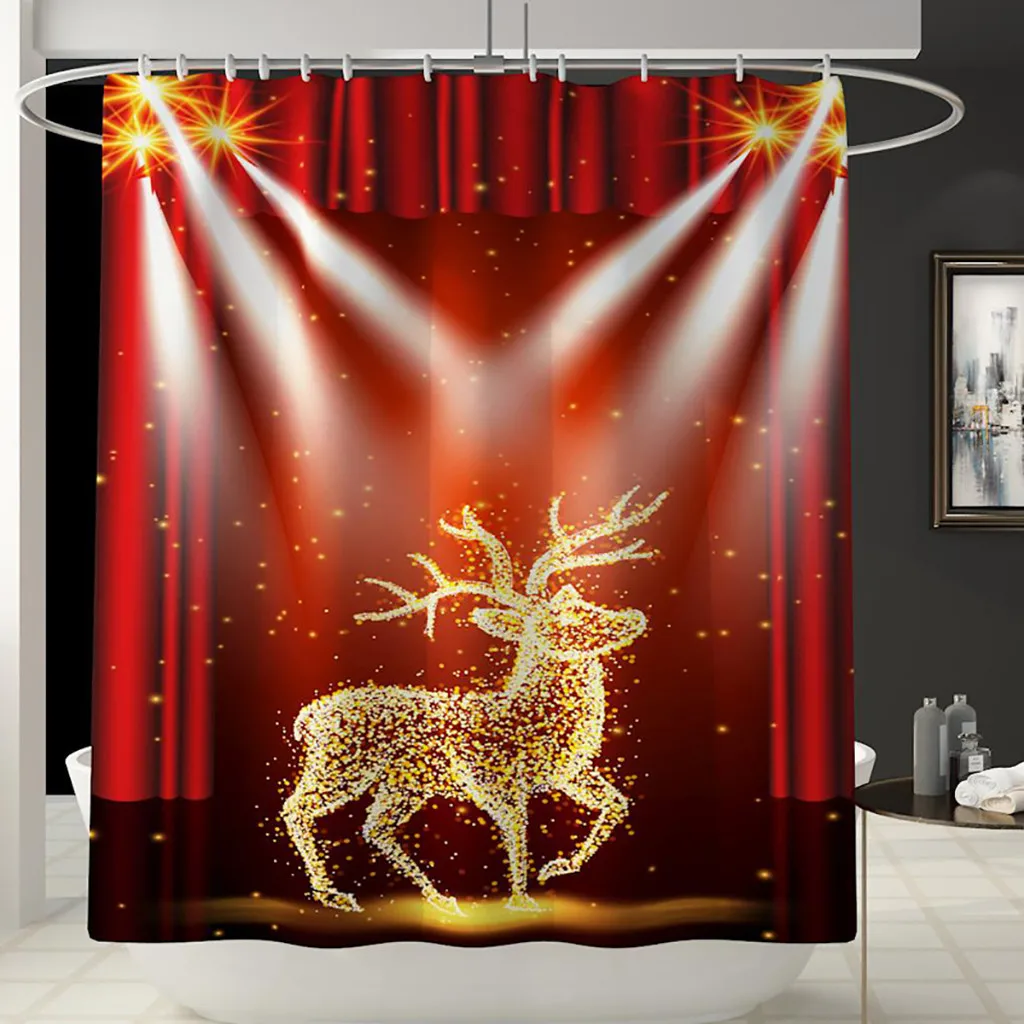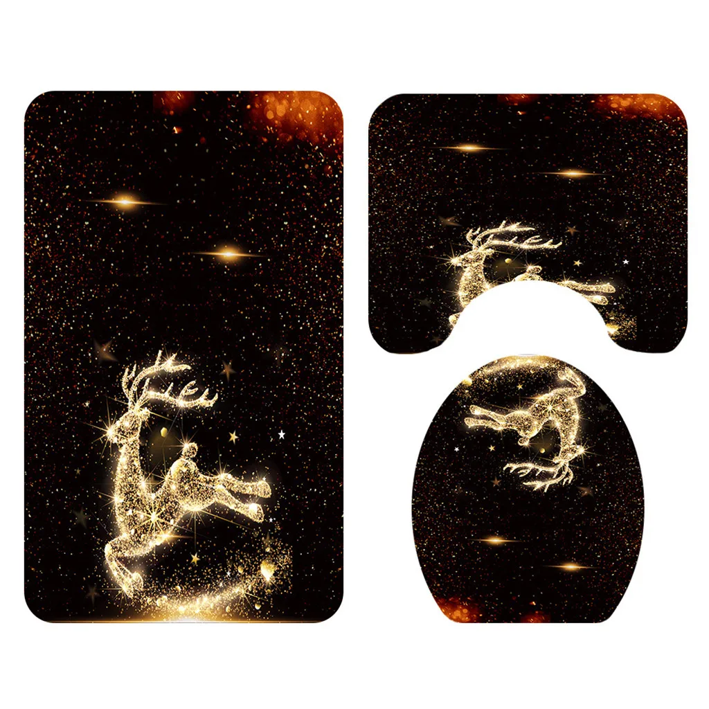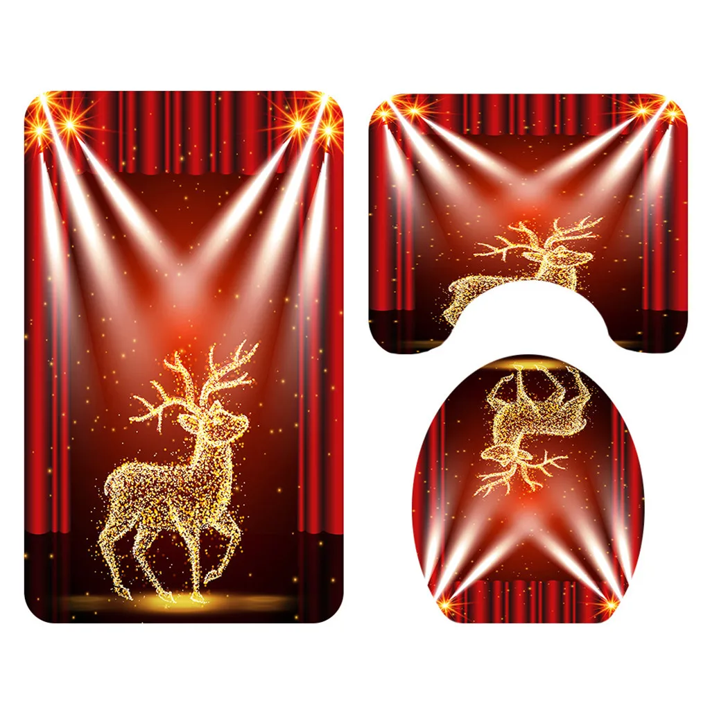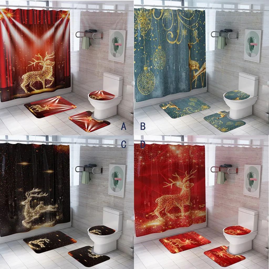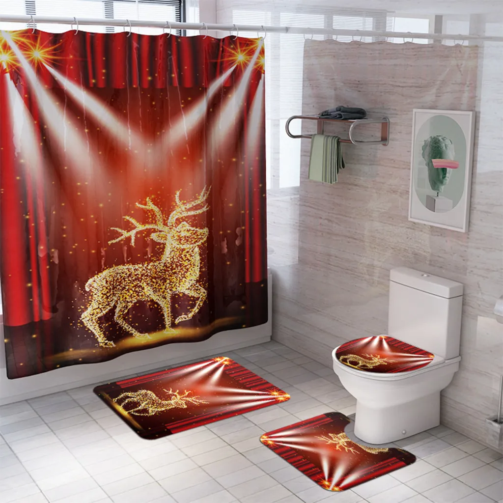 Принт с рождественским лосем коврик для ванной комнаты и занавеска для душа набор из четырех предметов