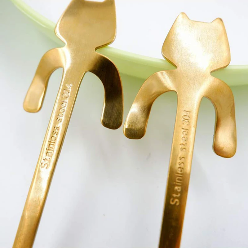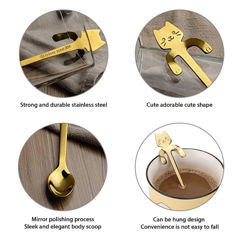 Ложки легко сочетаются. они могут соответствовать большинству кофе чашки и кружки, ложки «кошка», комплект изготовлен из безопасного и чистое качество 18/8 нержавеющая сталь, таким образом, вы можете использовать их без каких-либо проблем.