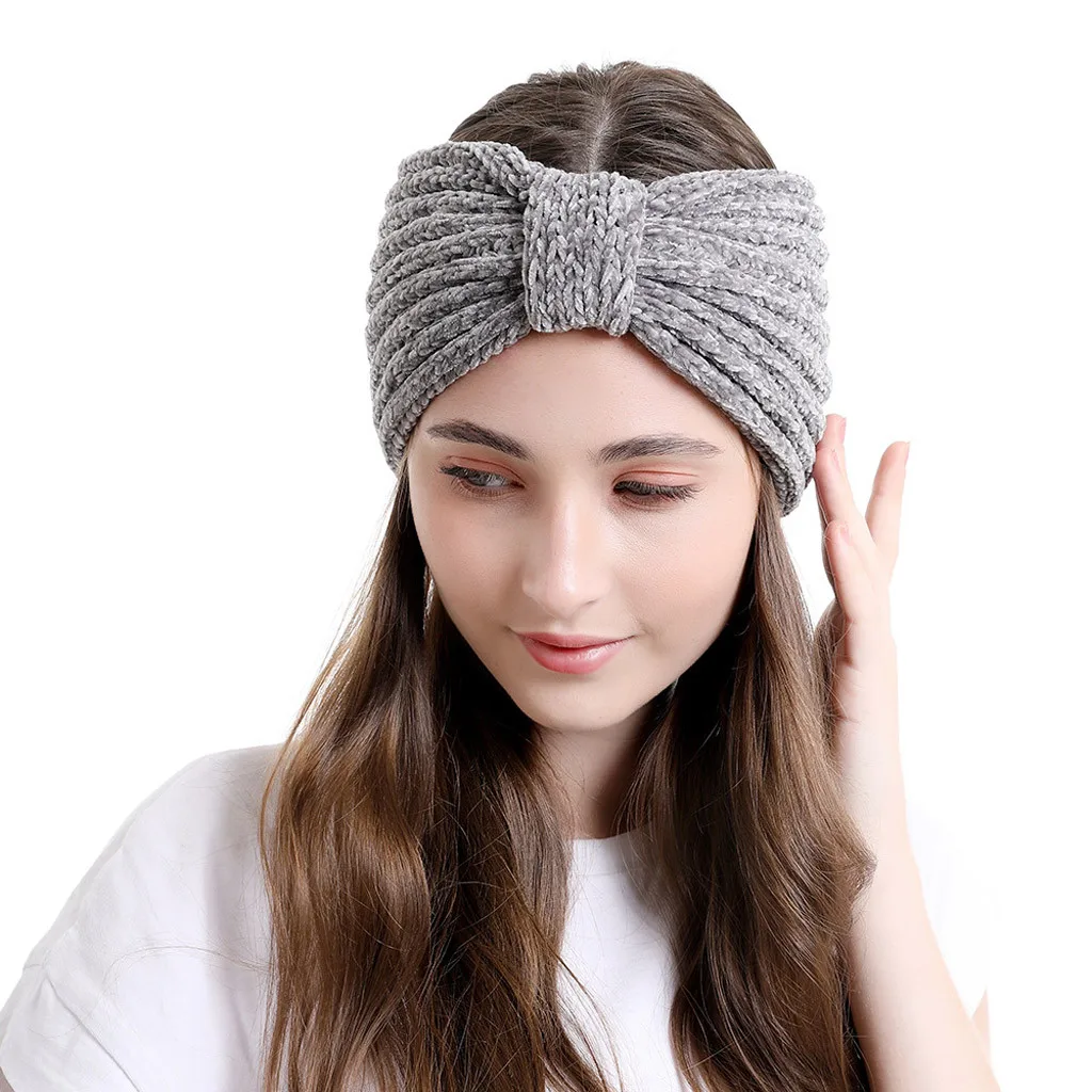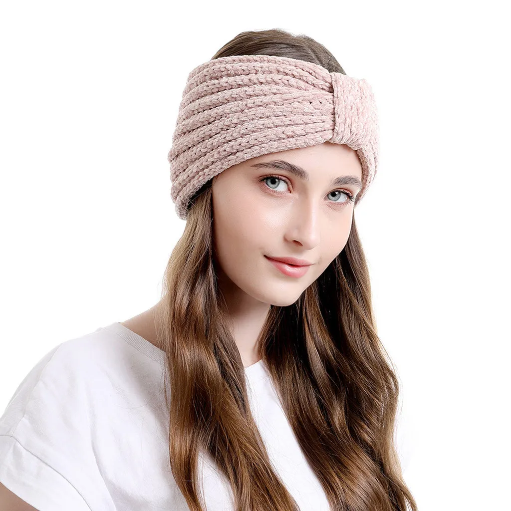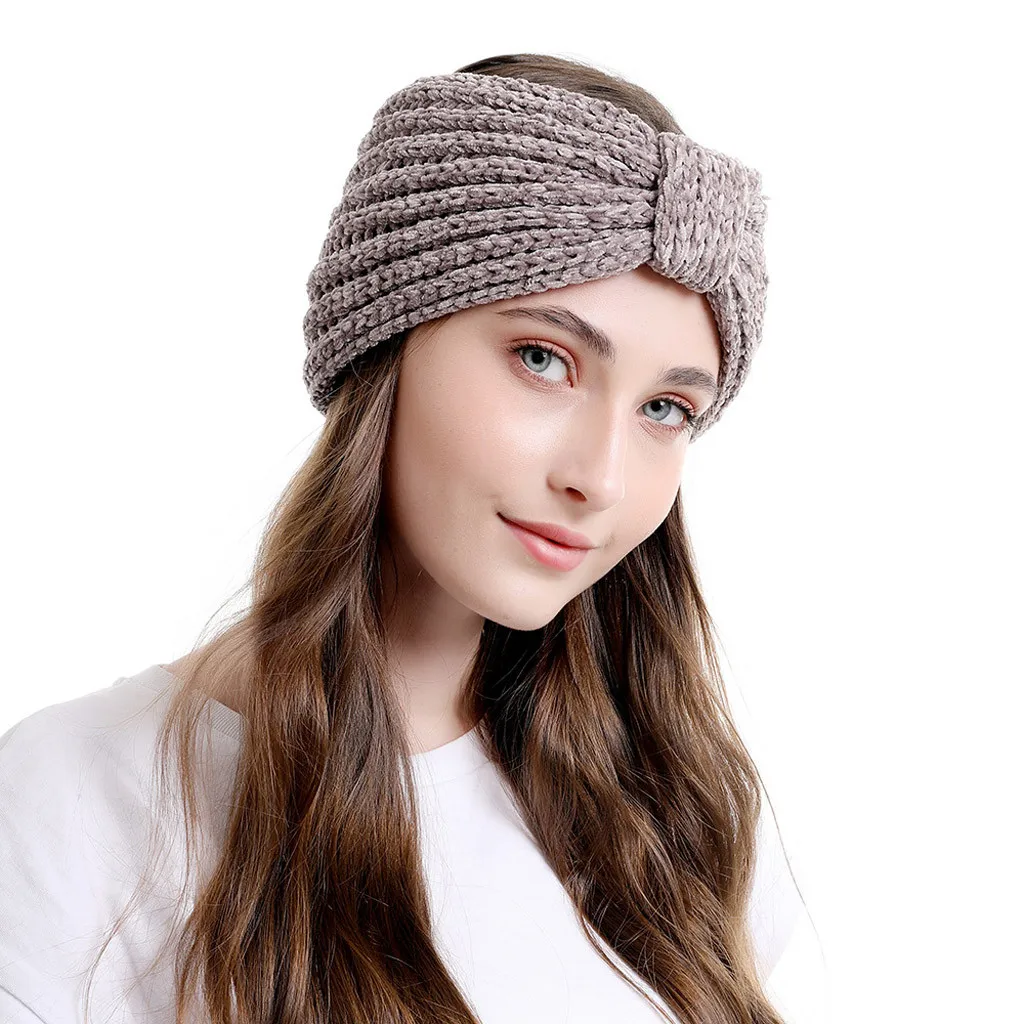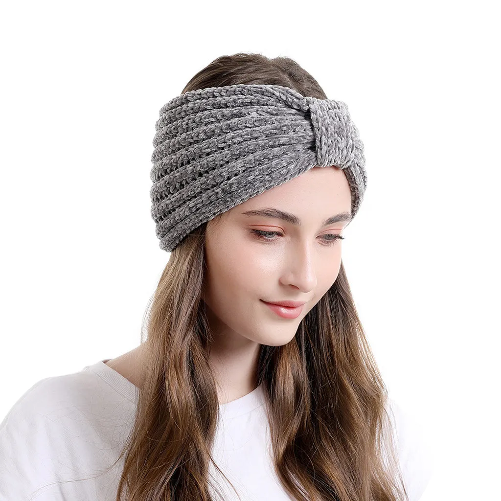 Модные женские вязаные повязки на голову, Зимняя Теплая повязка на голову, широкий аксессуар для волос, шапка