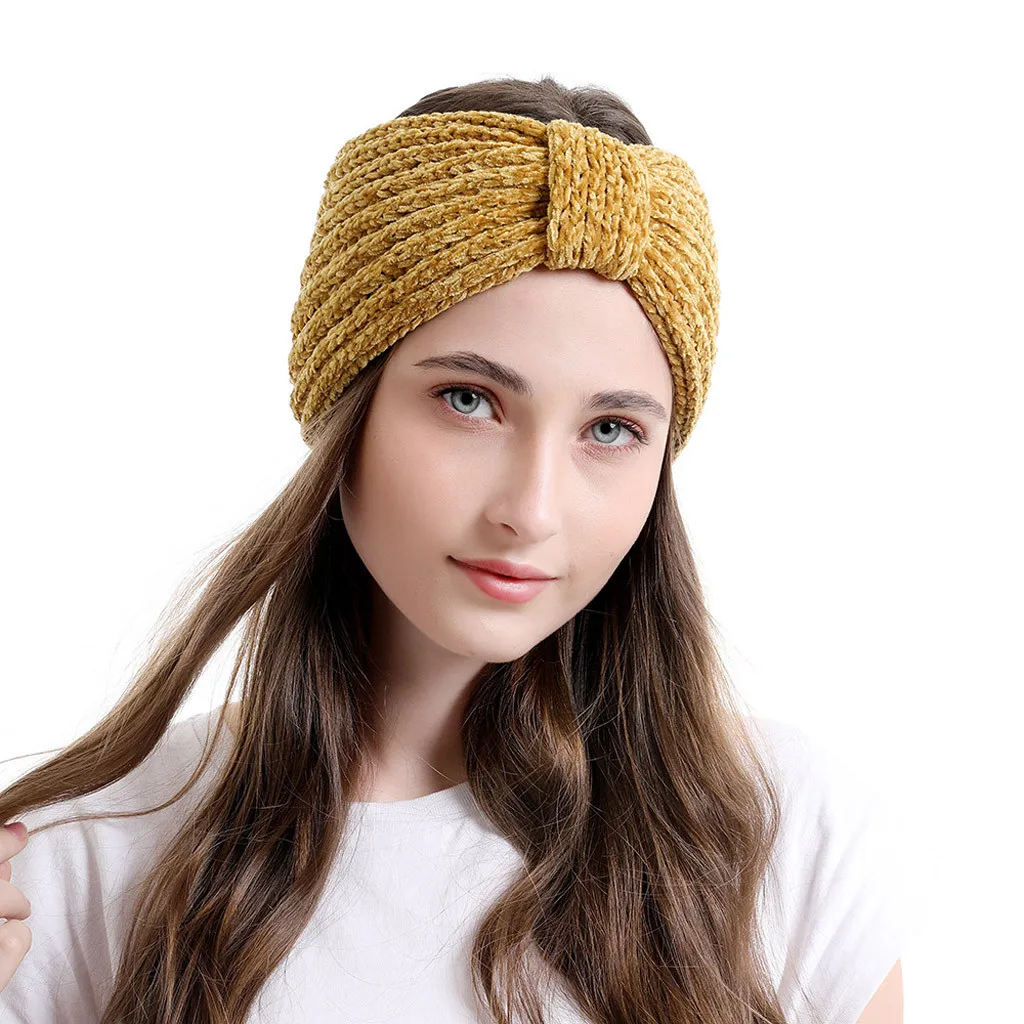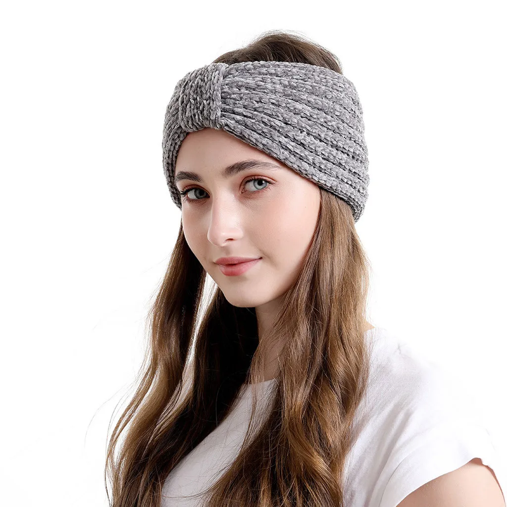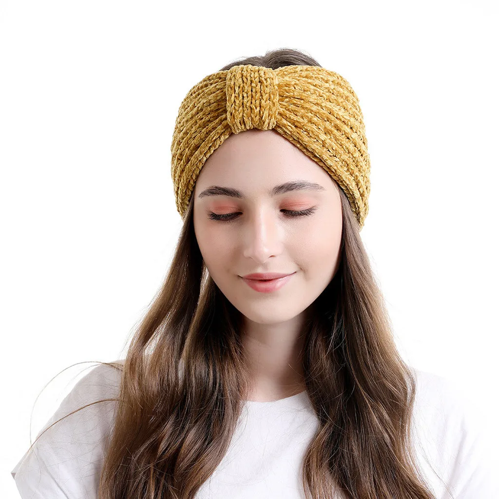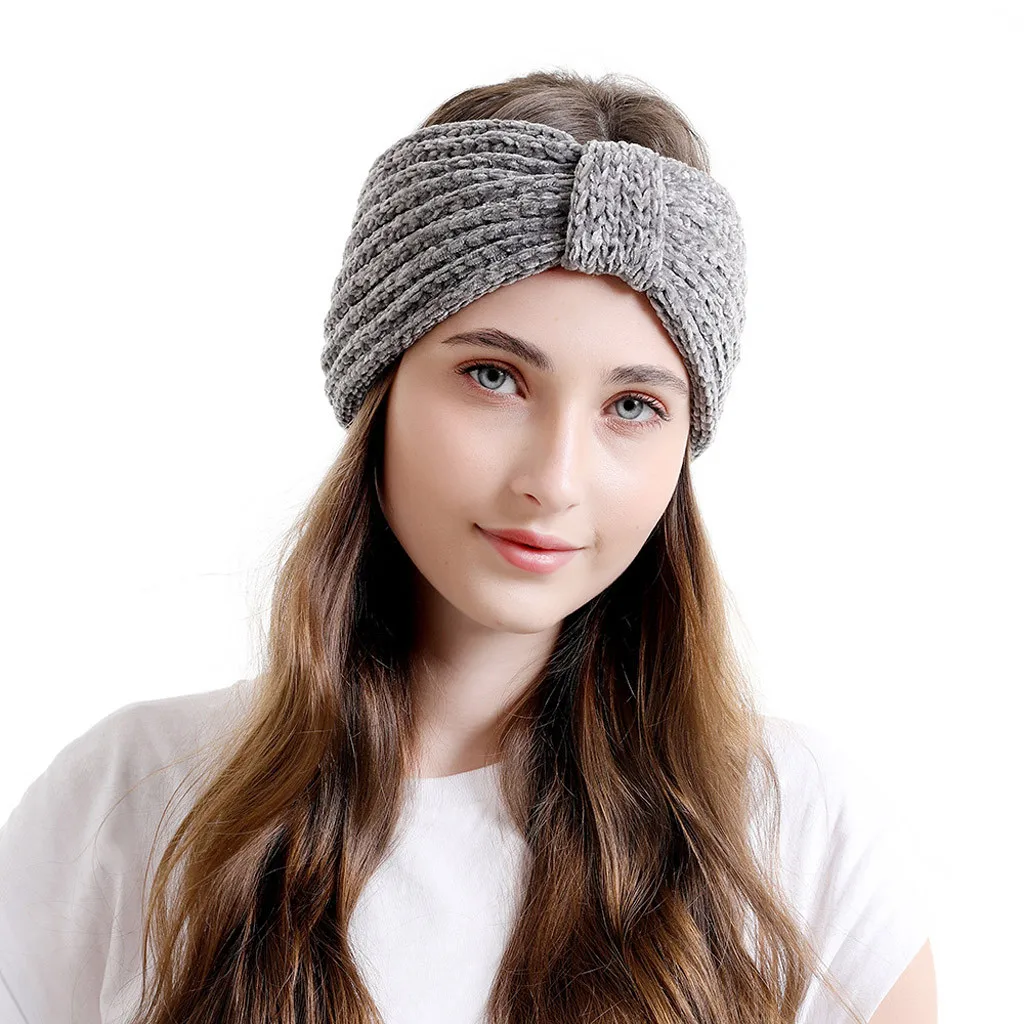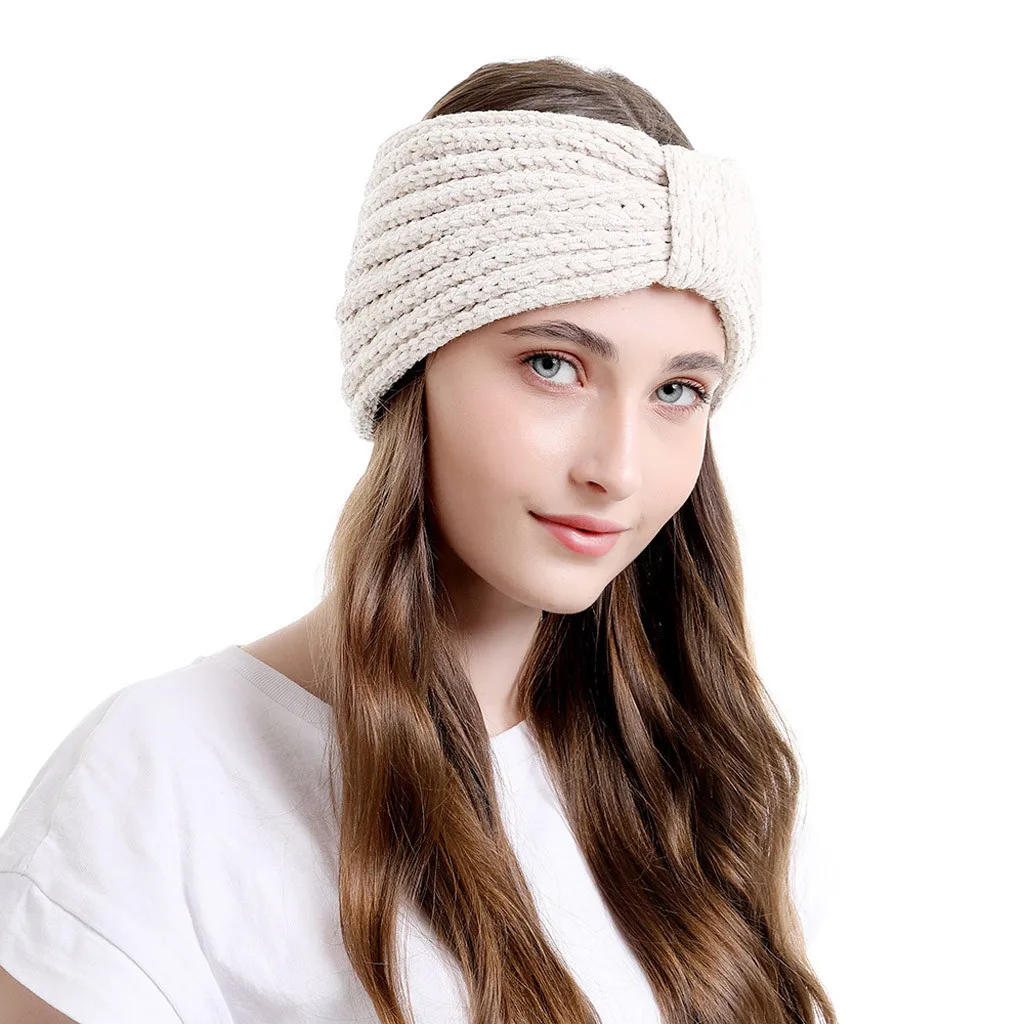 Модные женские вязаные повязки на голову, Зимняя Теплая повязка на голову, широкий аксессуар для волос, шапка