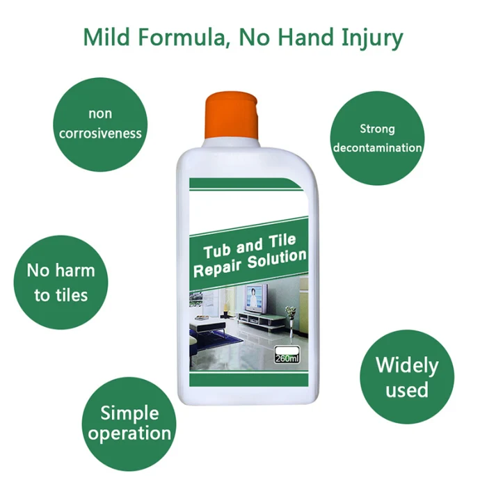 1. Был введен быстрый и простой способ ремонта и восстановления черепицы, вмятин и труб. Спрей для ремонта ванной и плитки предназначен для ремонта мусора, царапин, вмятин и дефектов.