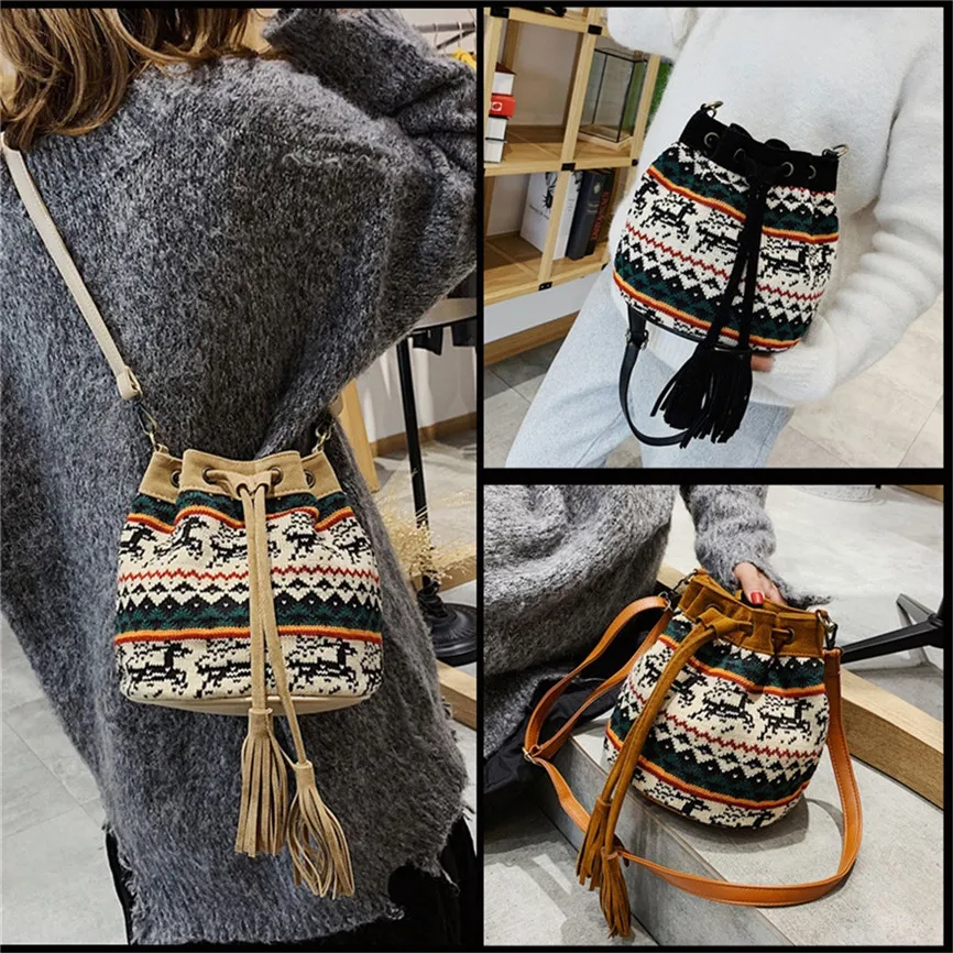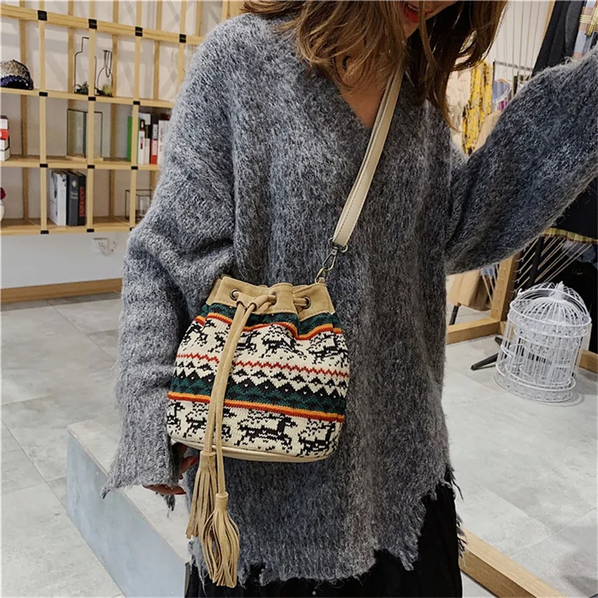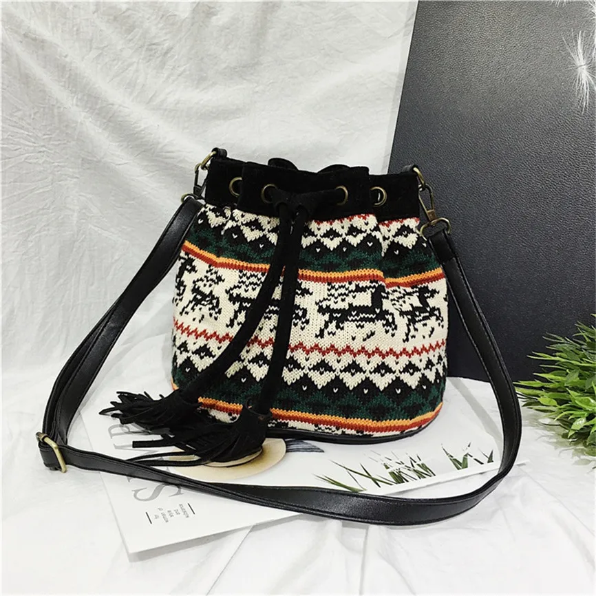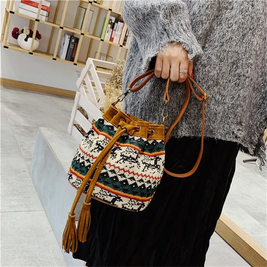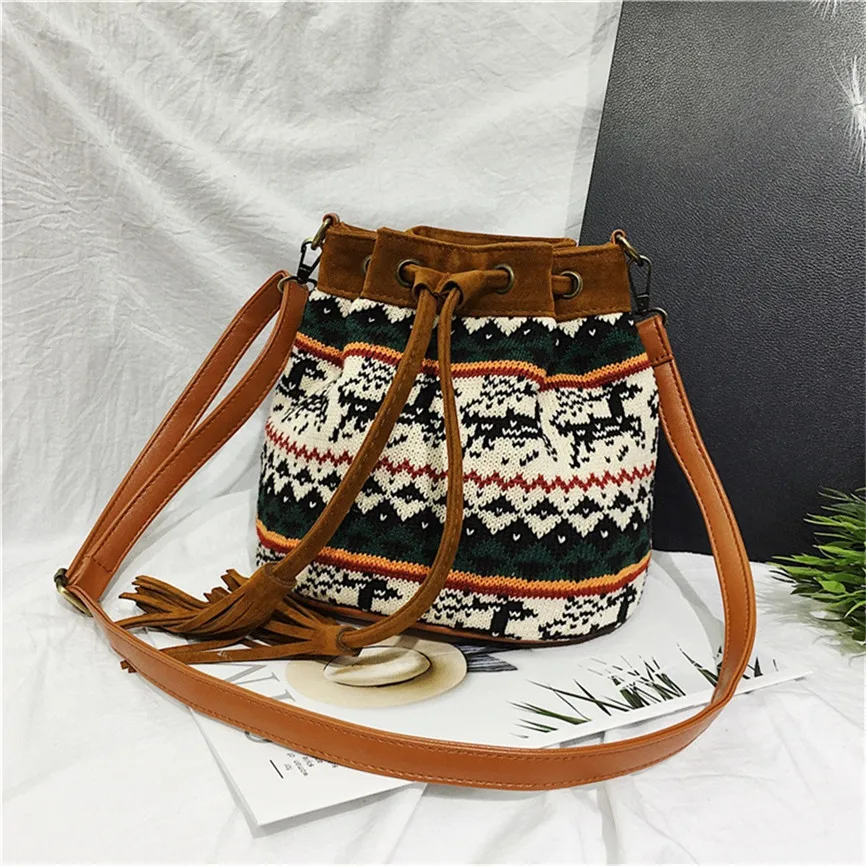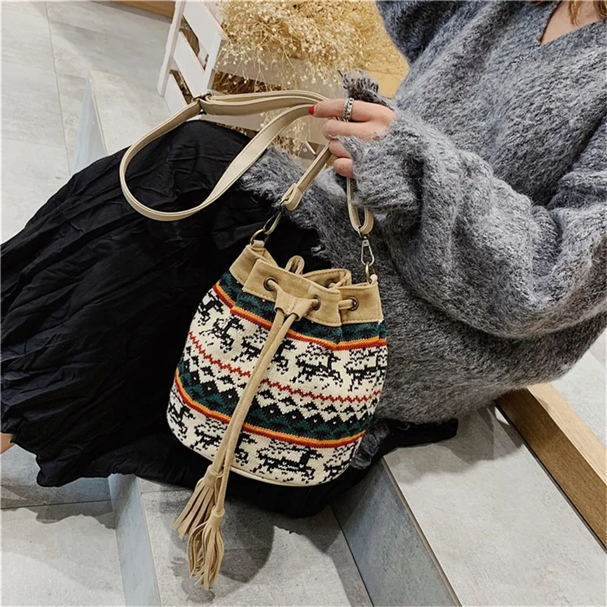 Женская сумка 2019 индивидуальная ткацкая универсальная Повседневная простая Наплечная Сумка-ведро дизайнерская однотонная сумка-мессенджер