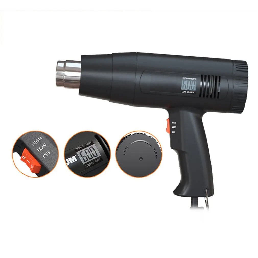 2000 Вт Цифровой термостат горячего воздуха с 3 насадками тепловой пистолет горячий воздух нагнетатель термоусадочная упаковка тепловой Электроинструмент паяльник тепловой воздушный пистолет
