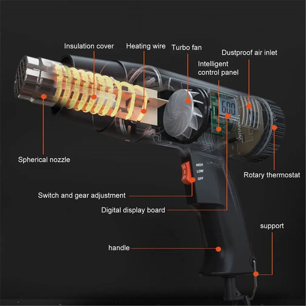 1. Этот 2000 Вт пистолет с горячим воздухом отличается высокой производительностью, безопасностью и надежностью.