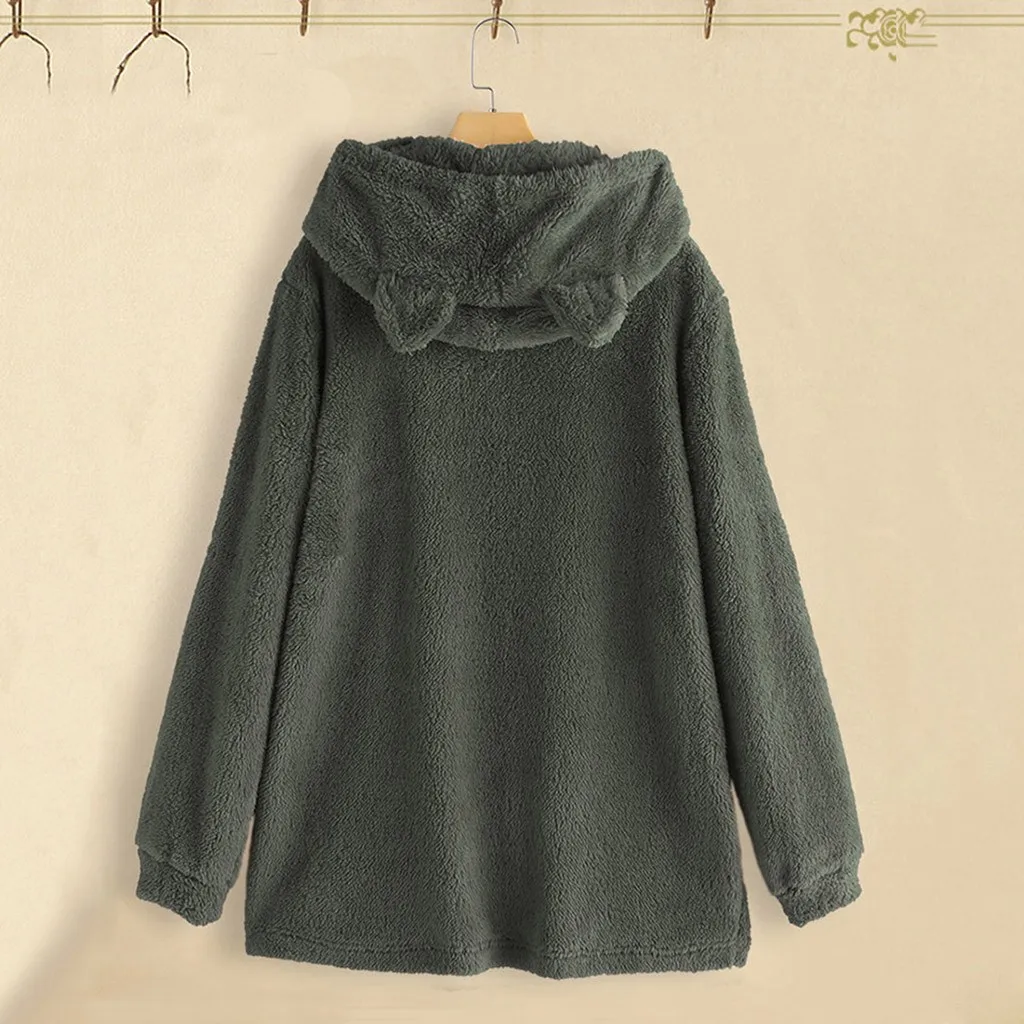 Женская флисовая кофта с вышивкой размера плюс, теплая толстовка на пуговицах