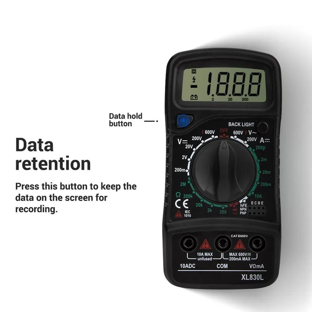 1. Точное измерение: цифровой мультиметр с 1999 счетом автоматической полярности для более точных измерений.