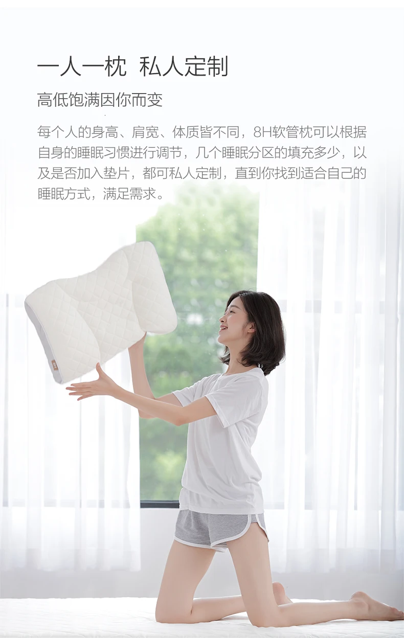 8 H спящий инженер обнаружил, что ключом к расслаблению сна является высота подушки и сила поддержки на задней стороне. Существует четыре вида спальных мест для людей, спящих на спине, спящих, спящих на левой и правой сторонах. 8 H шланг подушка может регулировать высоту подушки свободно для достижения подходящей спящей среды и уменьшить изменение осанки во время сна, тем самым защищая качество сна.