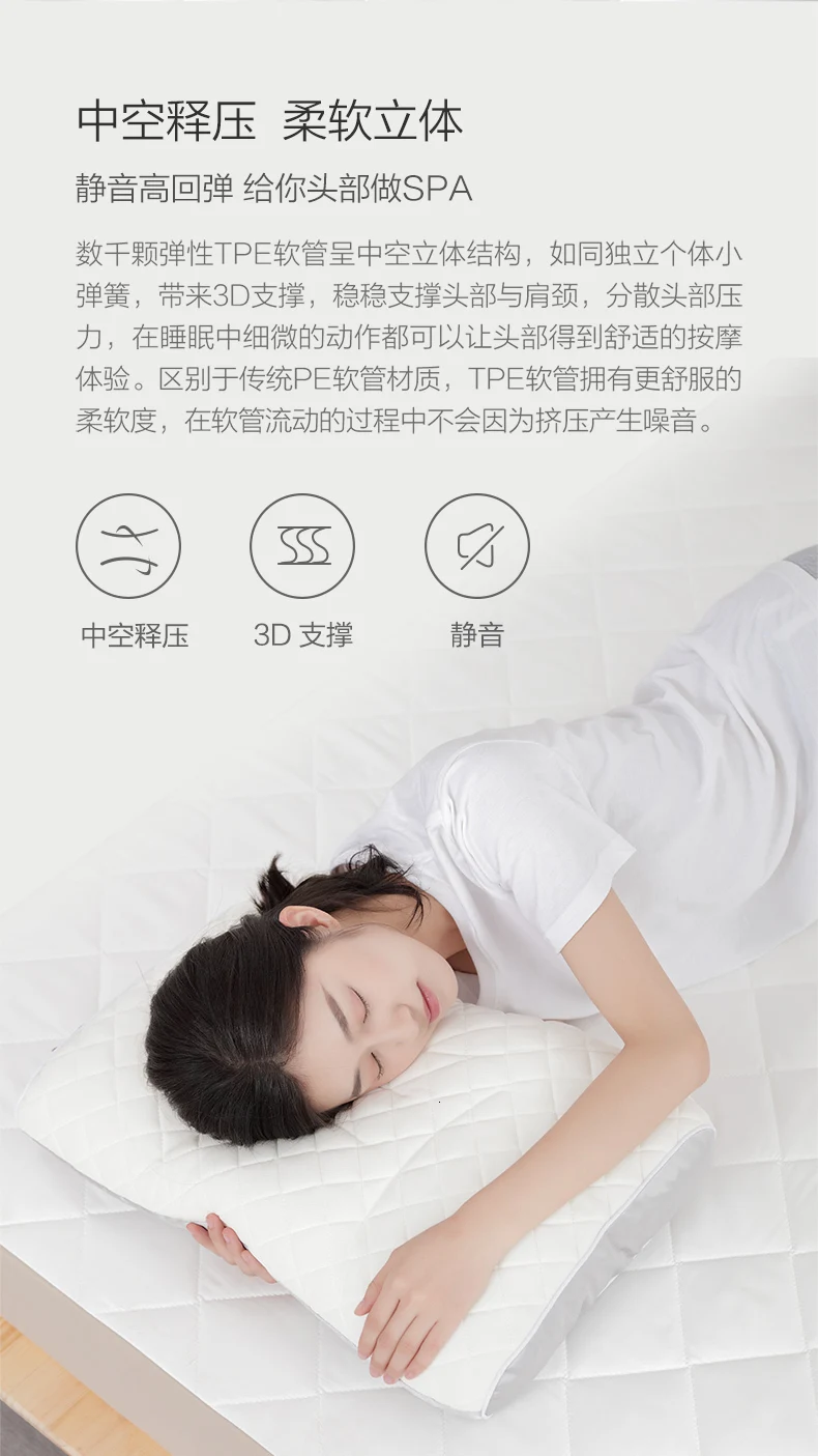 Специальная цилиндрическая полая структура TPE шланга имеет более эффективную газопроницаемость и теплообменную способность, что может поддерживать стабильность всего процесса сна в большой степени, и держите подальше от знойного тепла. Хорошая подвижность воздуха и тепловыделение удерживают подушки свежими в воздухе, не дают бактериям, клещам, плесени, а также обеспечивают здоровый сон.