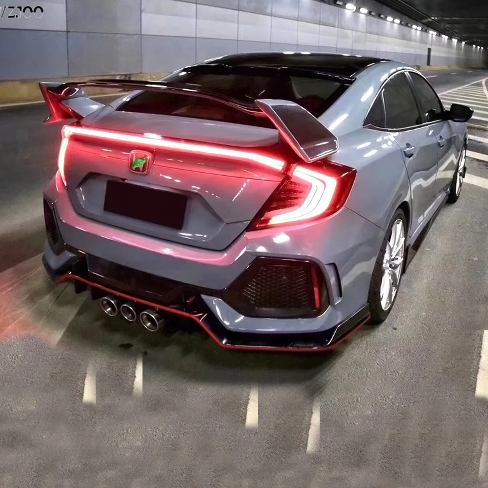 Автомобиль стиль для подходит 2016-2020 Honda Civic 10TH Gen TR передняя губка + боковые юбки + крыло вспышки комплект авто аксессуары