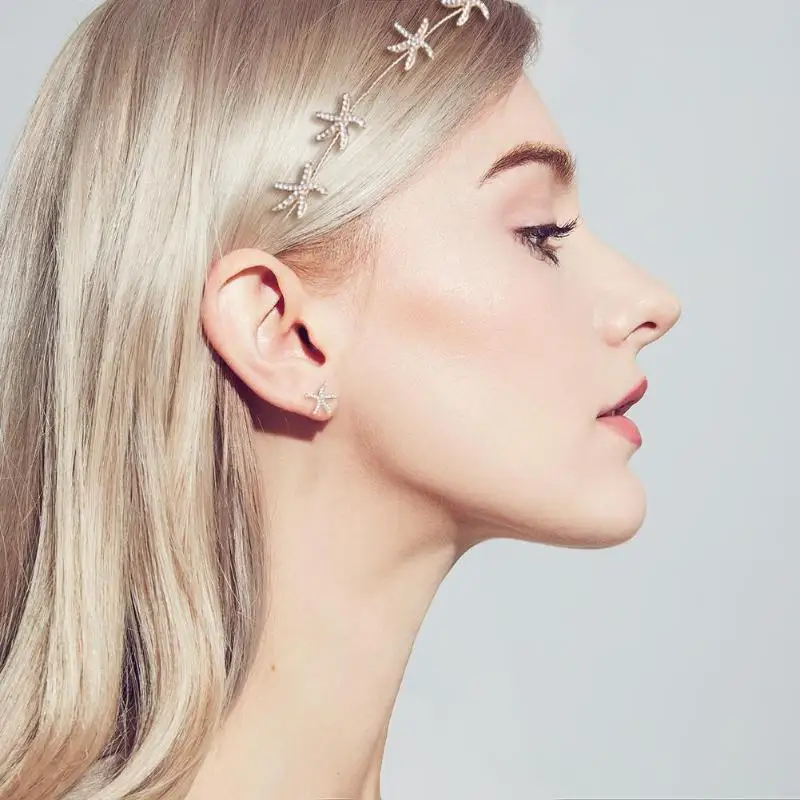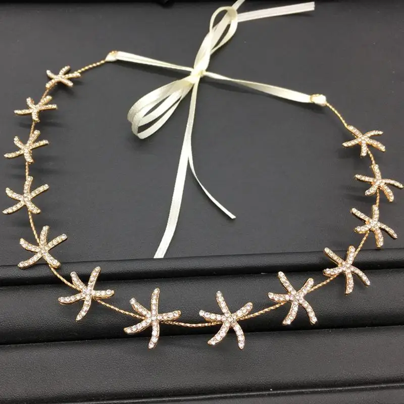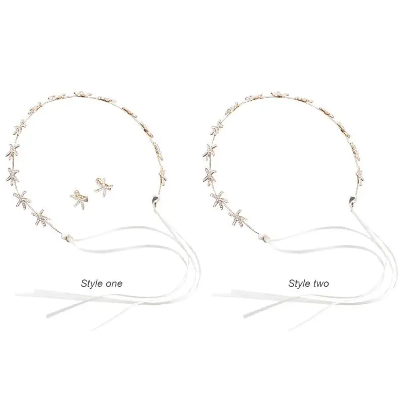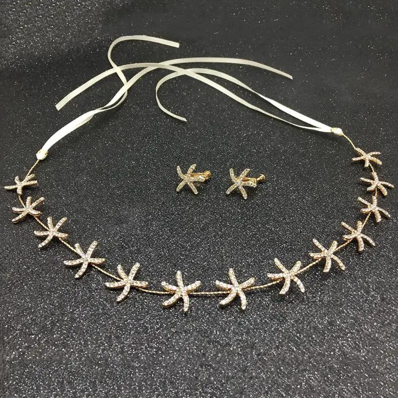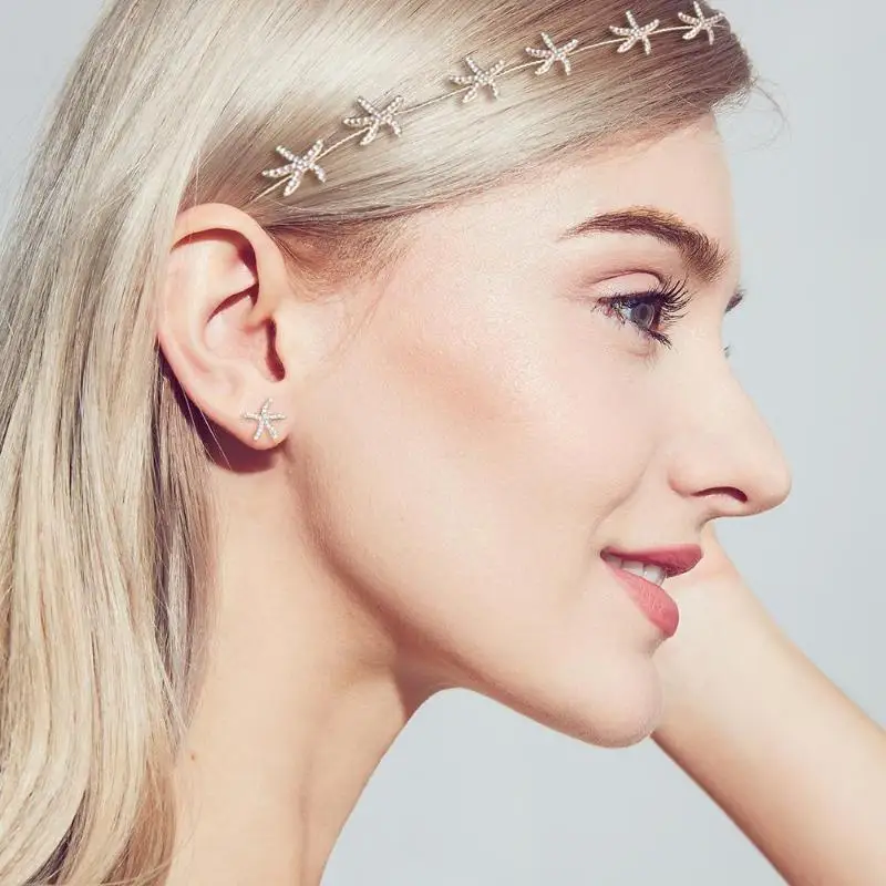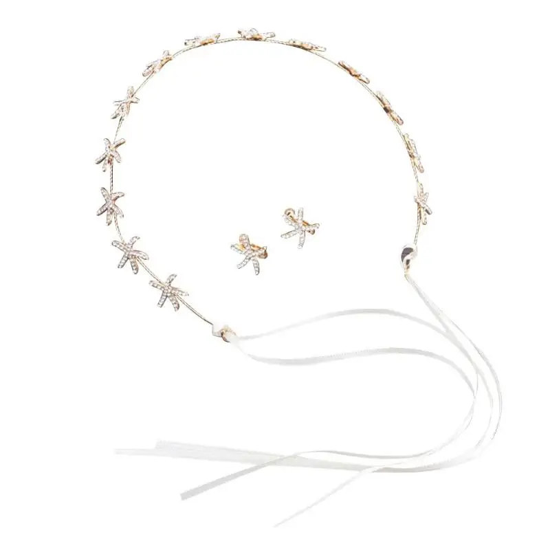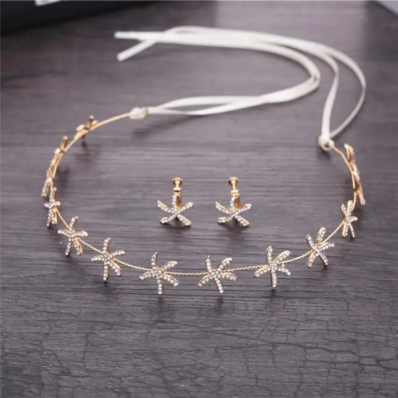 3 шт./компл. Морская звезда Стразы повязка на голову лента для волос элегантные серьги-гвоздики для невесты свадебный головной убор аксессуары для волос подарок
