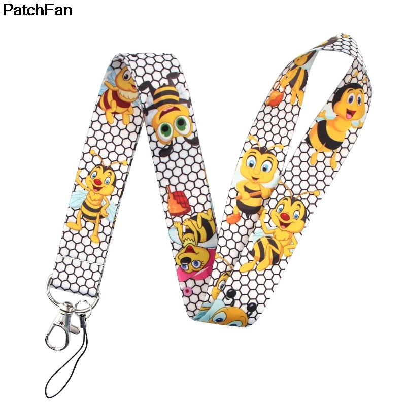 [Name]:A2458 Patchfan cartoon cute bee Key Lanyard for keys ID Phone USB Badge Holders Phone Neck Straps webbings for kids gifts