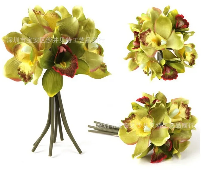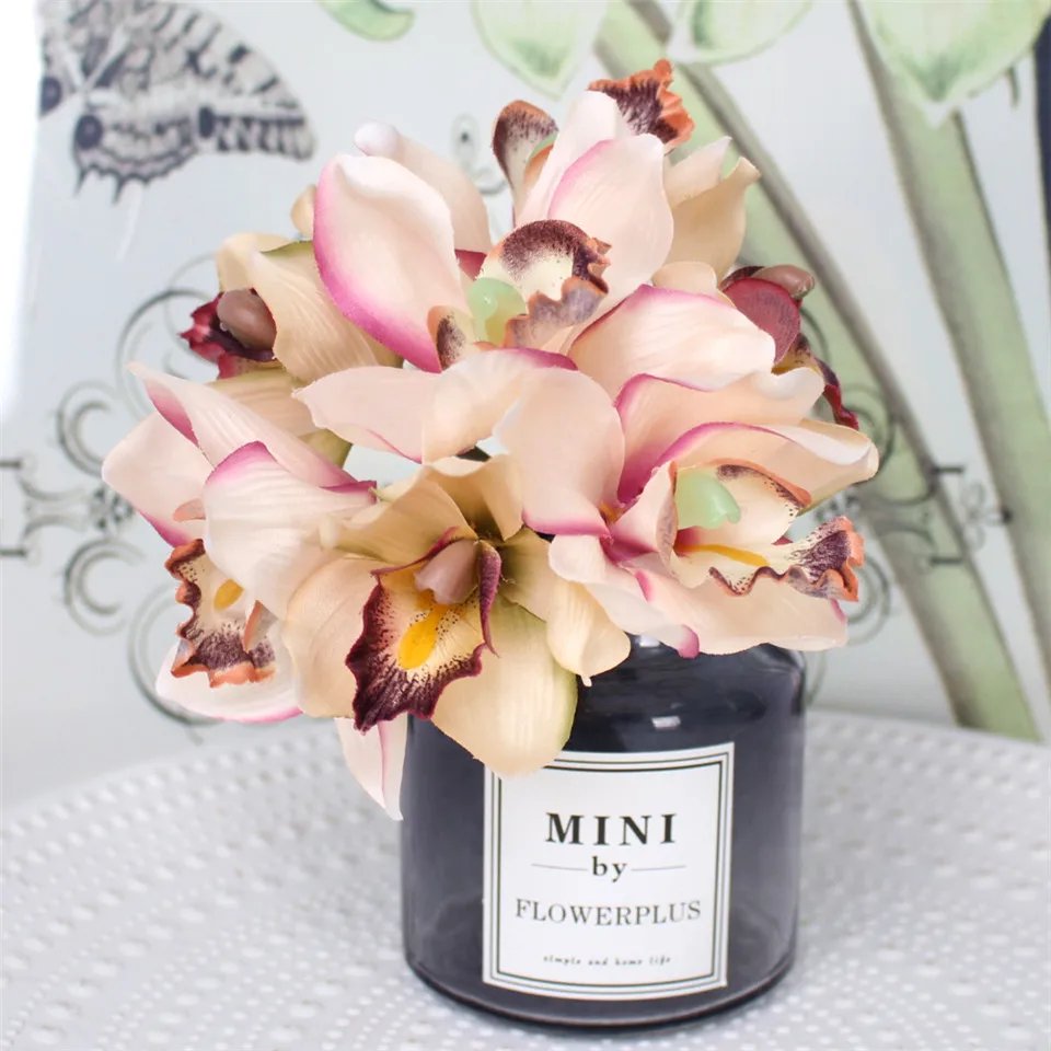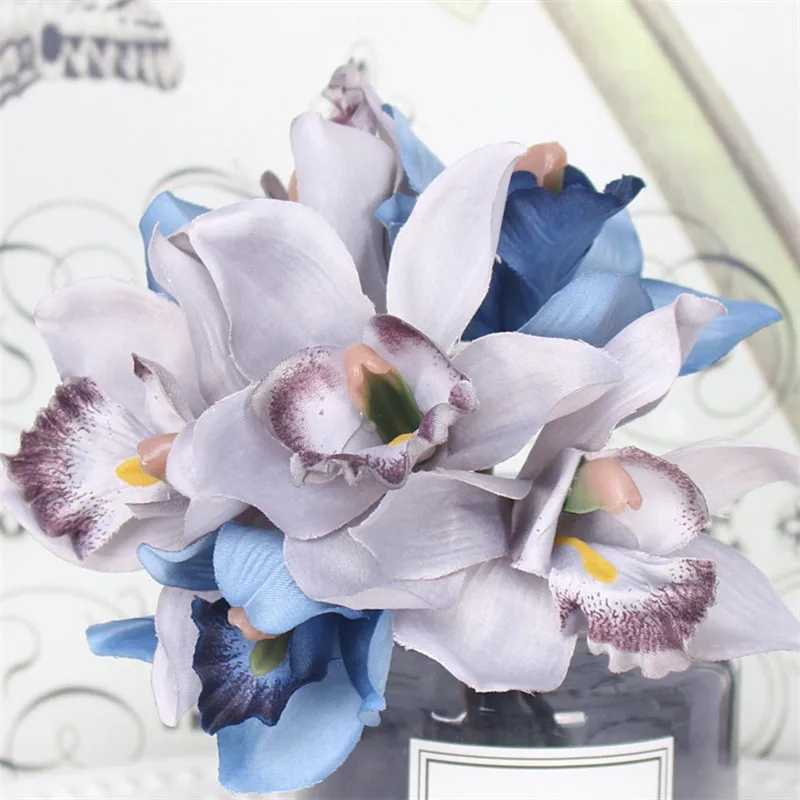 Имитация орхидеи 7 голов искусственный цветок Cymbidium Украшение Свадебный букет Шелковый цветок для украшения дома поддельный Флорес