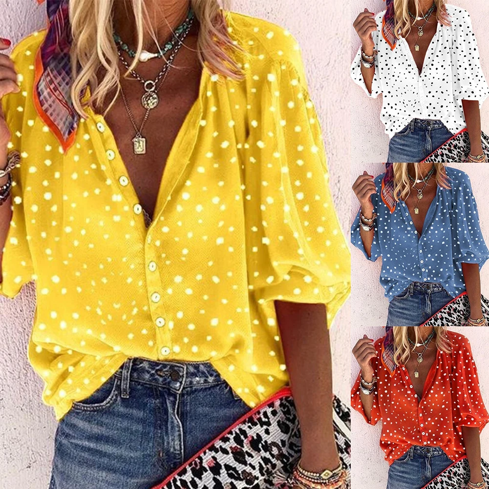 Осенняя модная женская блузка большого размера с принтом снежинок, рукавом 3/4, V-образным вырезом, рубашка