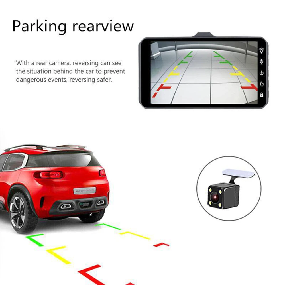 Видеорегистратор с двумя объективами, Мини Автомобильный видеорегистратор, Full HD 1080 P, 4 дюйма, сенсорный экран, ips, с резервной задней камерой, регистратор с ночным видением, видеорегистратор