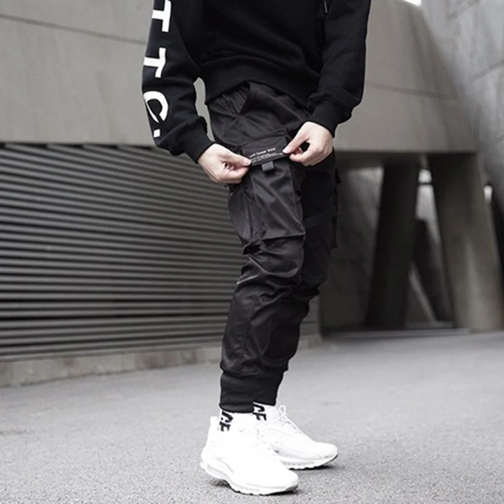 Мужские штаны для бега, черные брюки, спортивные штаны, Уличная Одежда для танцев, спортивные штаны, повседневные штаны в стиле хип-хоп с завязками, мужская одежда