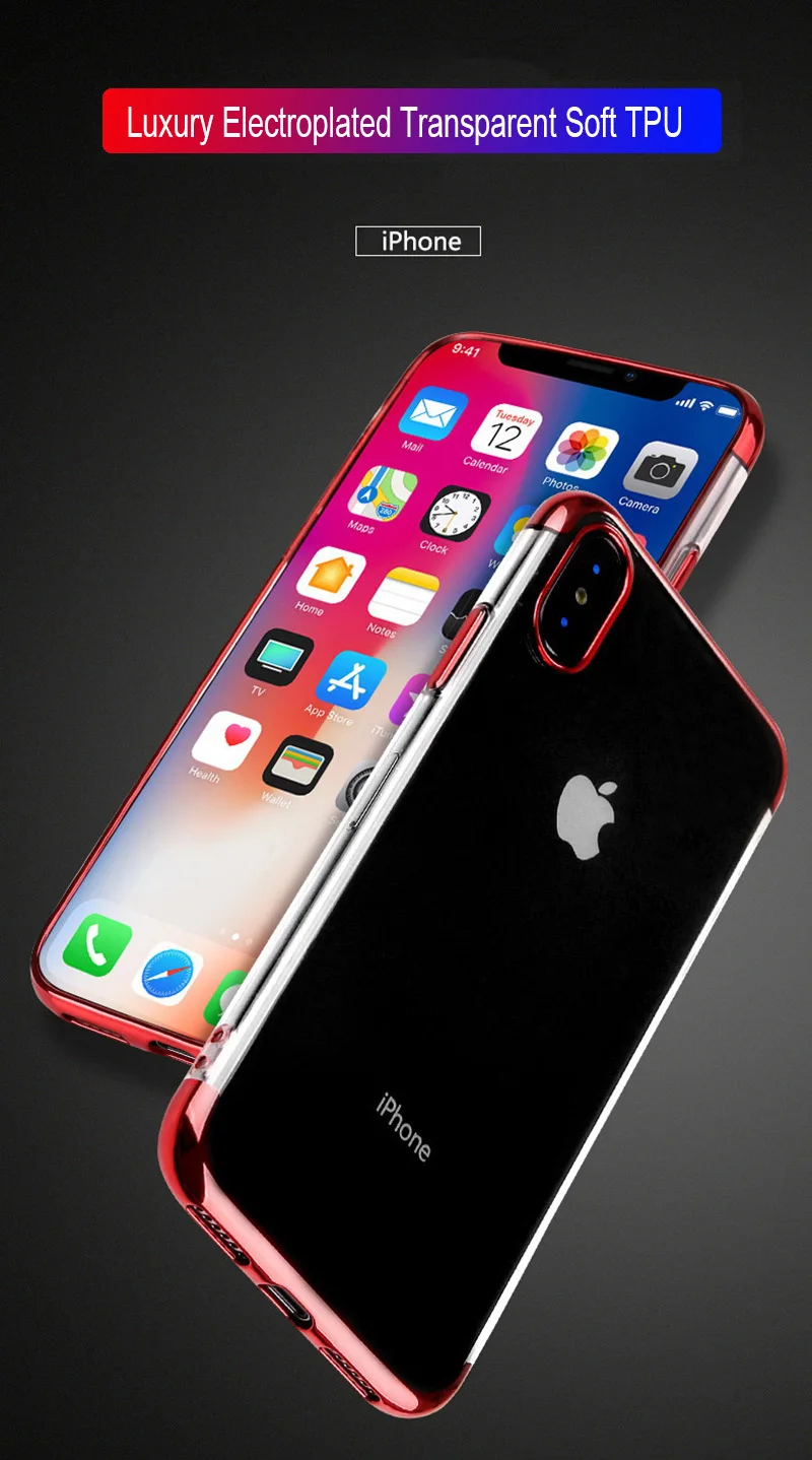 Гальванизированный прозрачный Ультратонкий Мягкий защитный чехол из ТПУ для Apple iPhone X XS Max XR 8 7 6 6s Plus