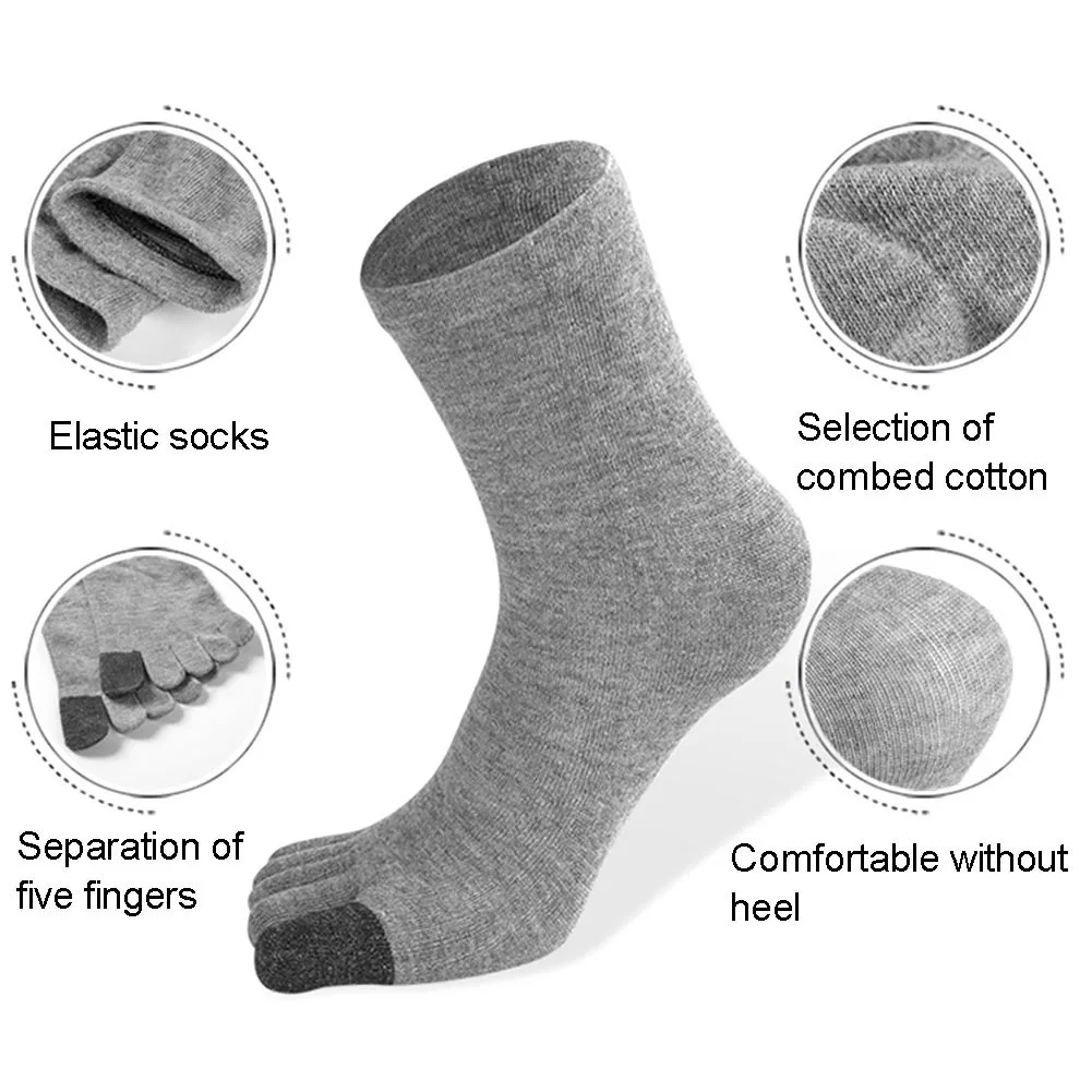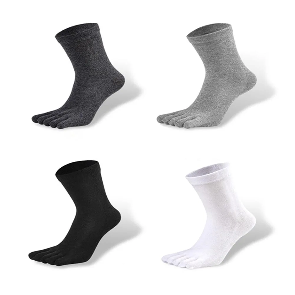 Мужские хлопковые повседневные спортивные мягкие дышащие эластичные носки с пятью пальцами средней длины