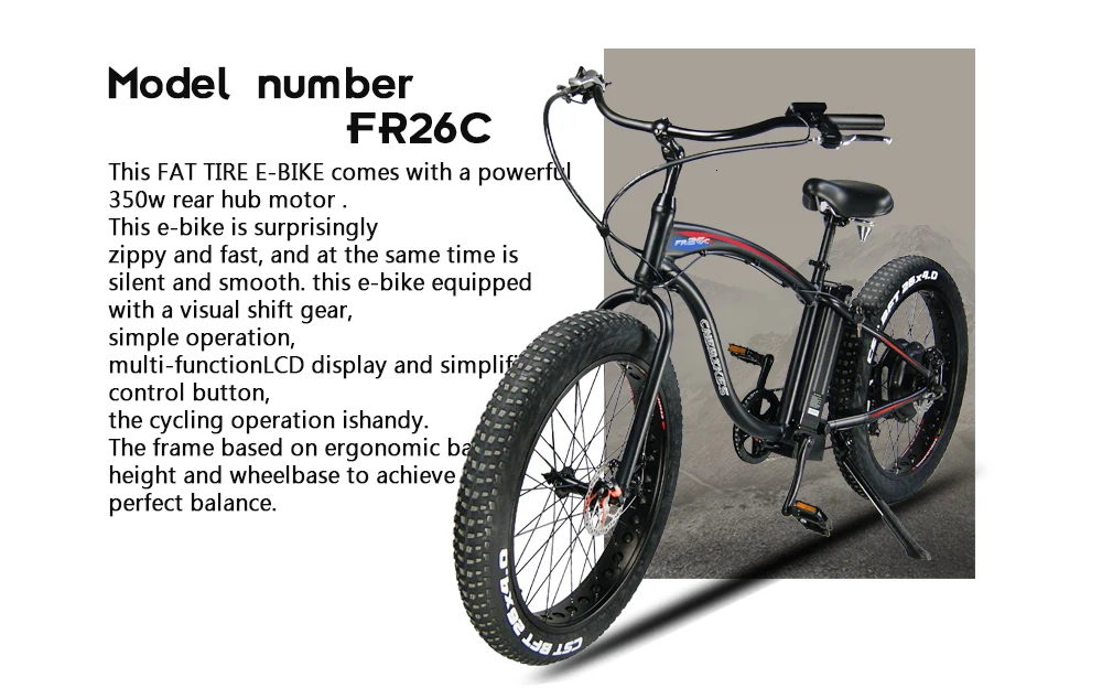 CE FR26C Утвержденный 36 v 350 W с толстыми покрышками электровелосипед/Электрический горный велосипед/электрический велосипед/упитанный электровелик для электрического велосипеда