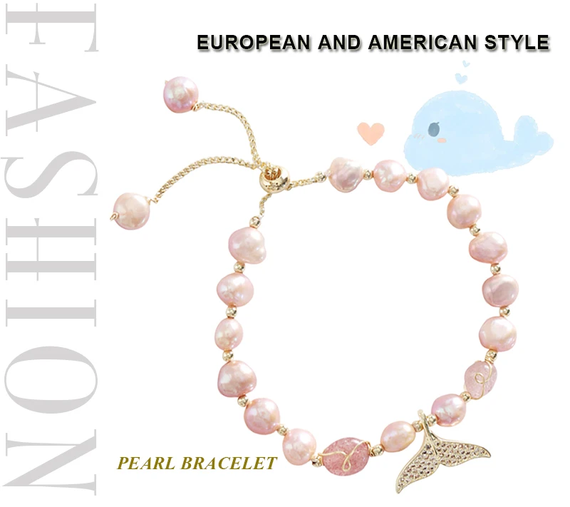 Модный натуральный пресноводный жемчуг кулон в виде рыбьего хвоста Браслеты Красный Кристалл, бусина розовый круглый жемчуг ювелирные изделия для женщин подарок