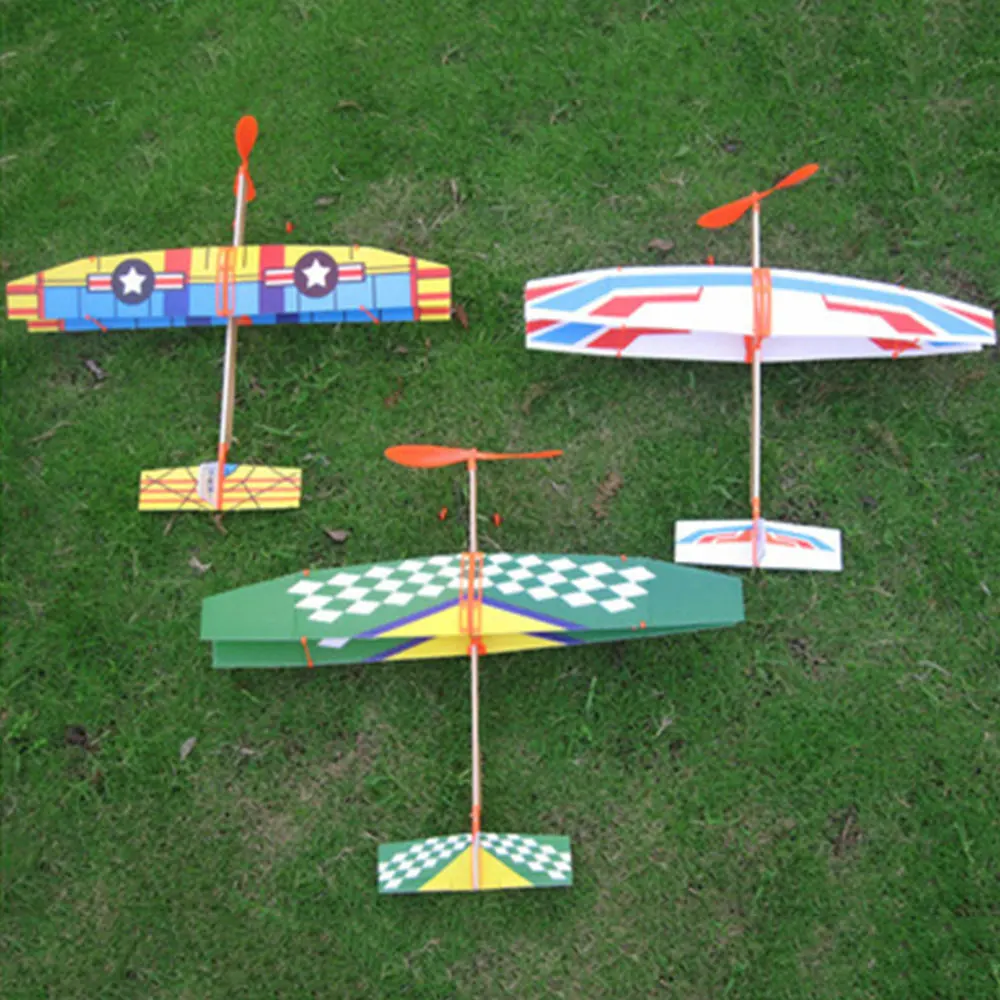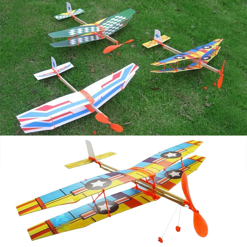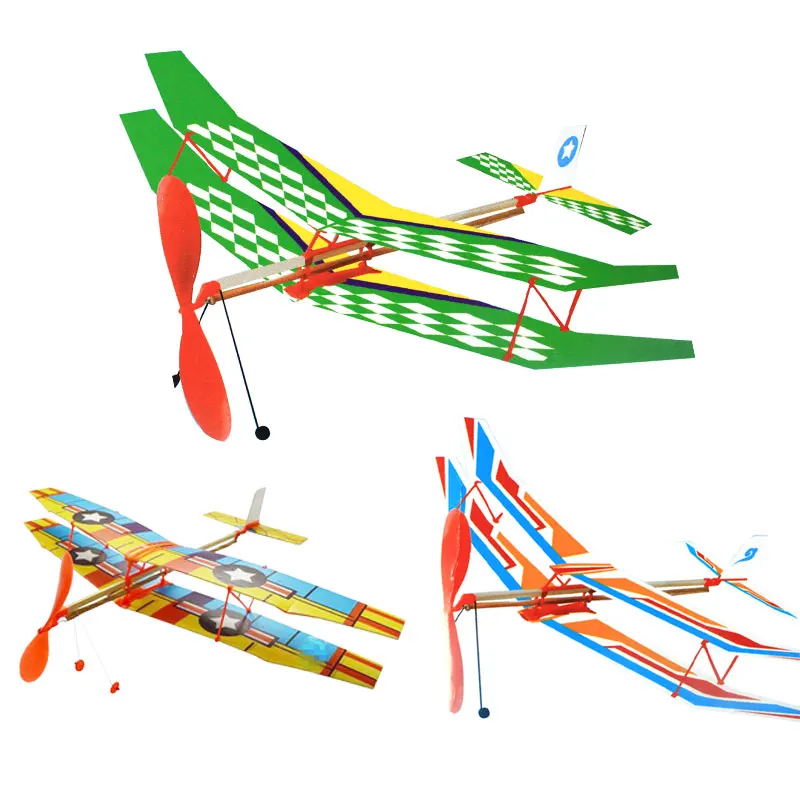 Смоделировано на двухплоском, просто слотайте свои детали вместе, а затем намотайте резиновую ленту с помощью пропеллера самолета, затем запустите в небо и посмотрите, как он скользит