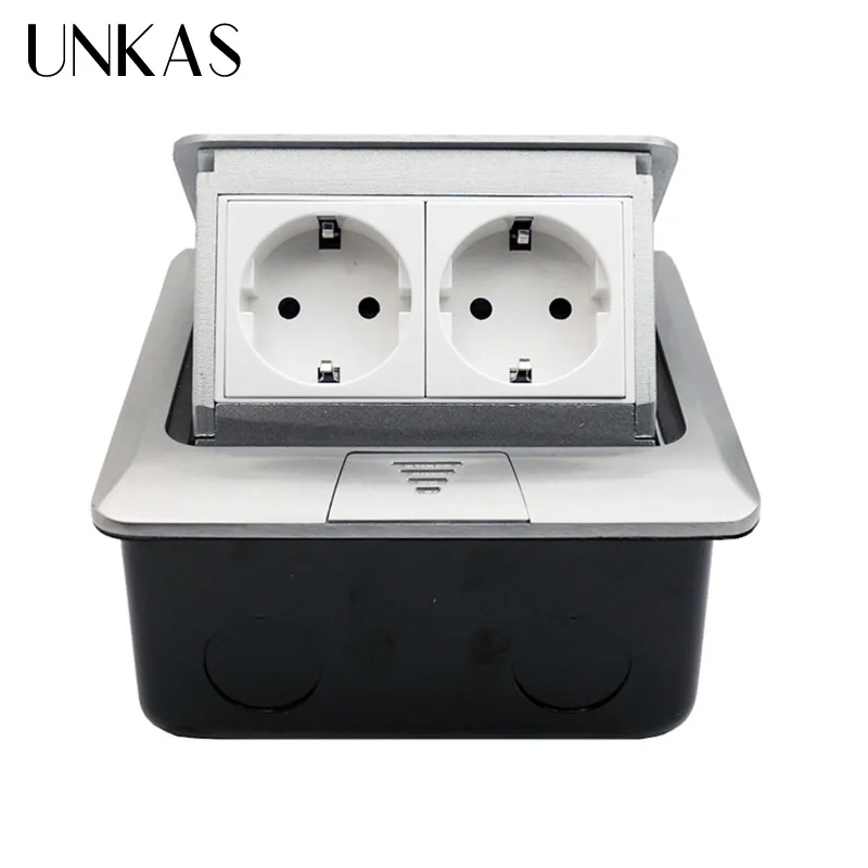 UNKAS Алюминий Панель по стандартам ЕС/США/FR Стандартный Pop Up Пол Socket 2 Way электрической розетке модульная Комбинации по индивидуальному заказу доступны