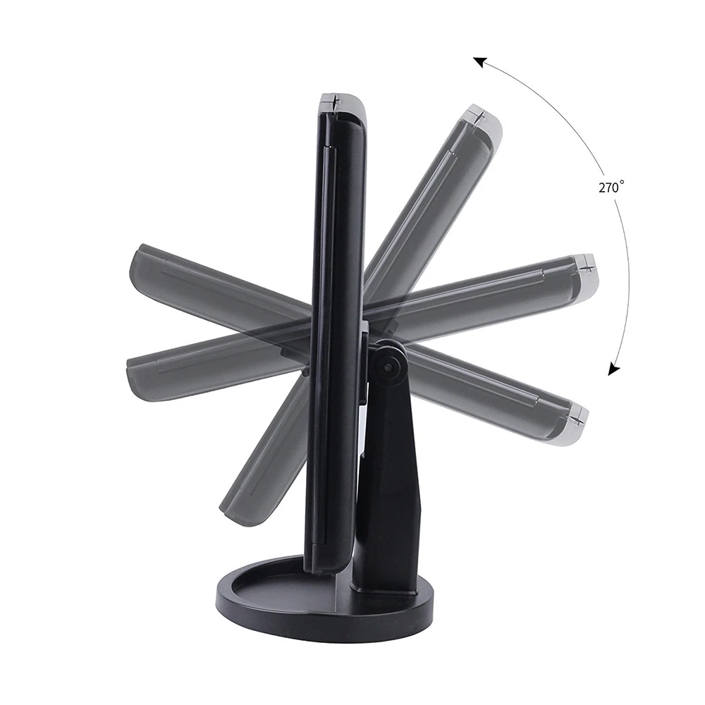 Регулируемая стойка, которая позволяет расположить ее под ваши предпочтения и использовать зеркало, даже если вы стоите. Трехслойная конструкция сэкономит много места на вашем столе.