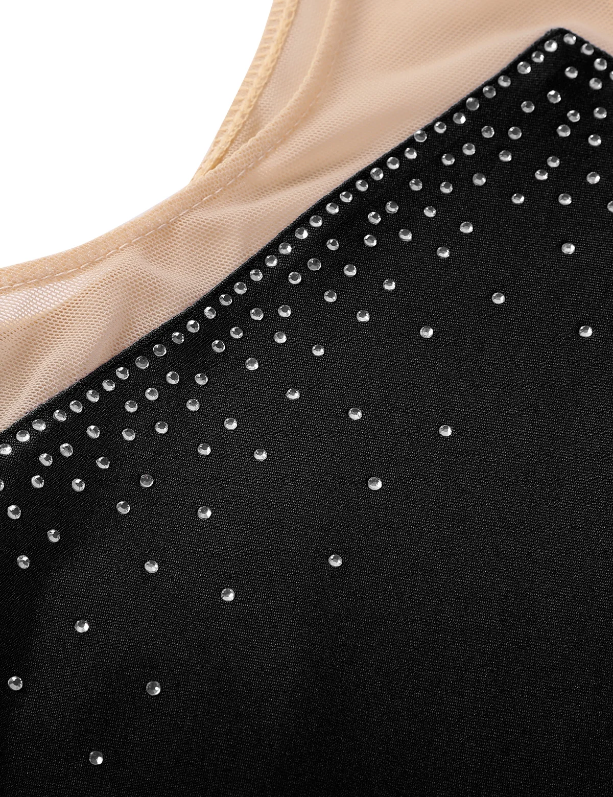 Без рукавов и правое плечо с двумя кнопками, сетчатый лиф, украшенный блестящими стразами, элегантный и очаровательный.