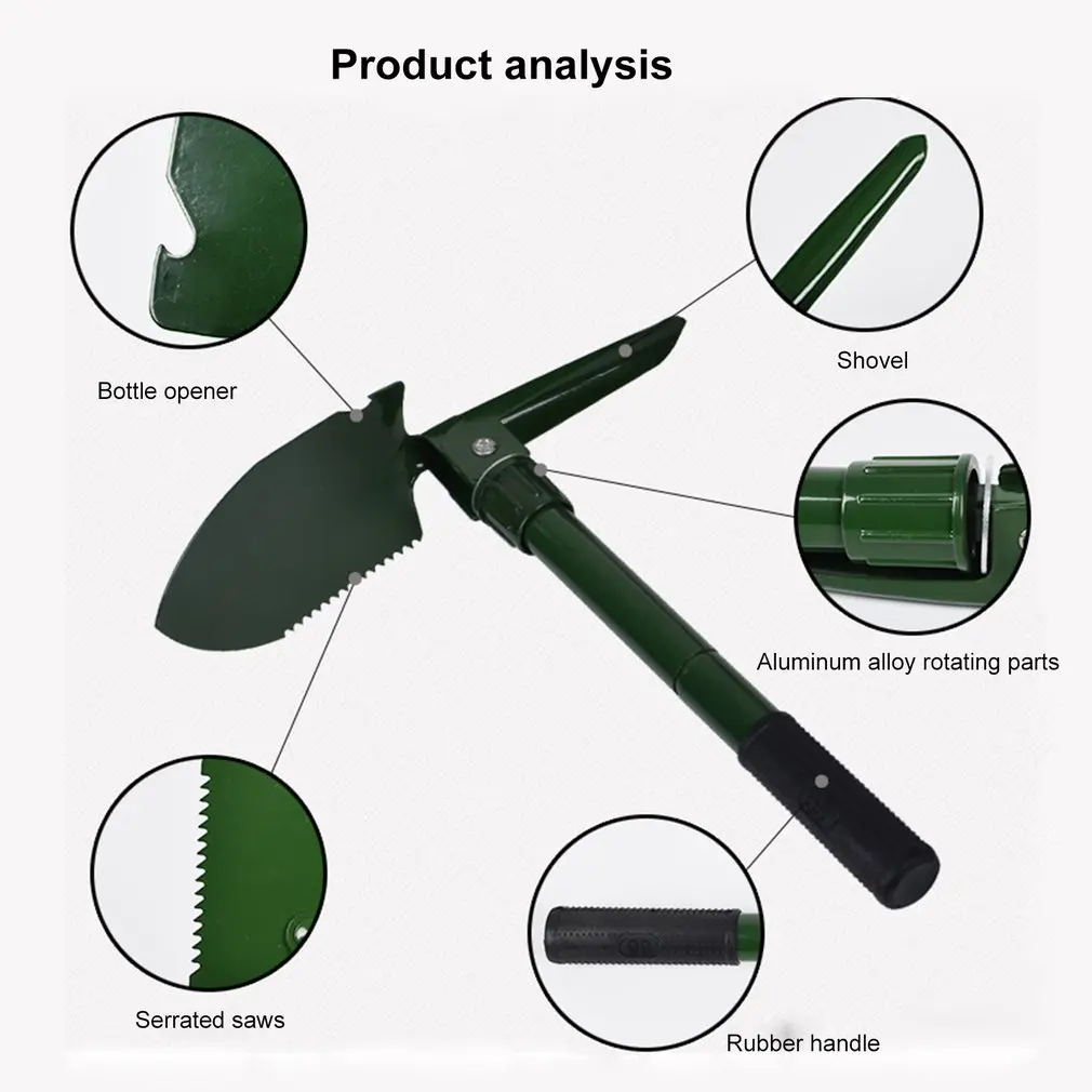 Функции лопаты 2,4 в 1: лопата для Короны, молоток для безопасности, открывалка для бутылок, Пиломатериал, Кирка, практичный для выживания на поле.