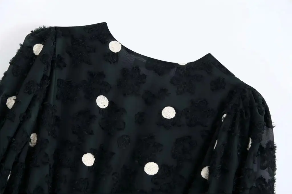 Женское платье в белый горошек с вышивкой, Привлекательное платье с длинным рукавом и v-образным вырезом, винтажное платье до середины икры с высокой талией