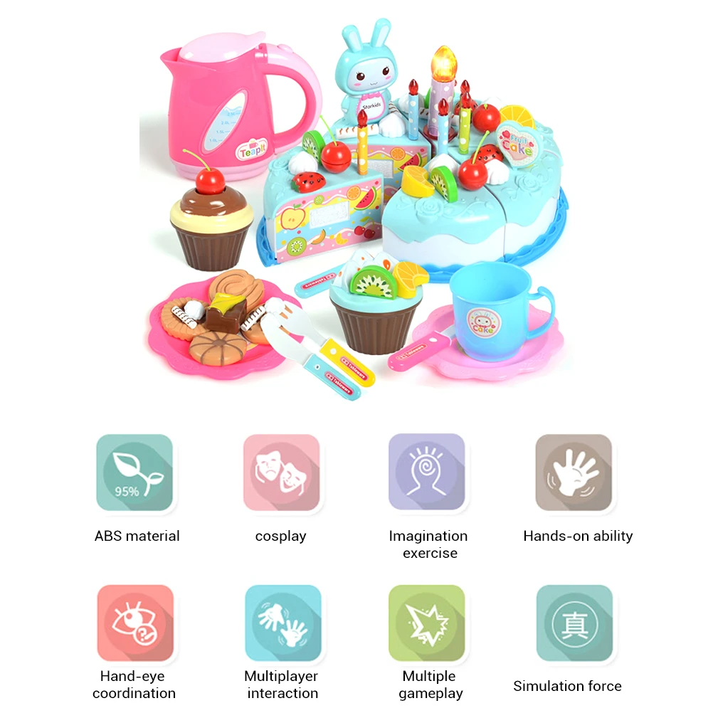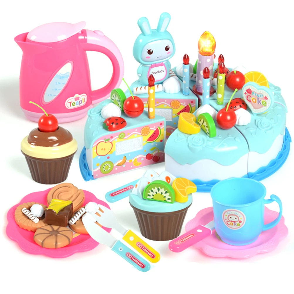 62 шт./компл. DIY резка вечерние игрушки для торта на день рождения, набор игрушек для девочек, детские игрушки для мальчиков и девочек, ролевые игры, еда, Детские кухонные игрушки