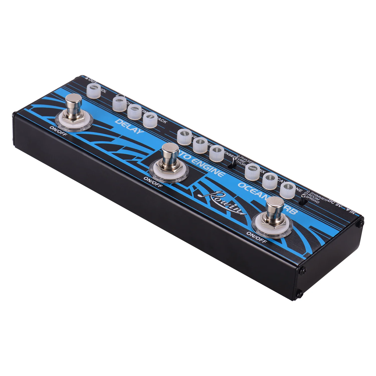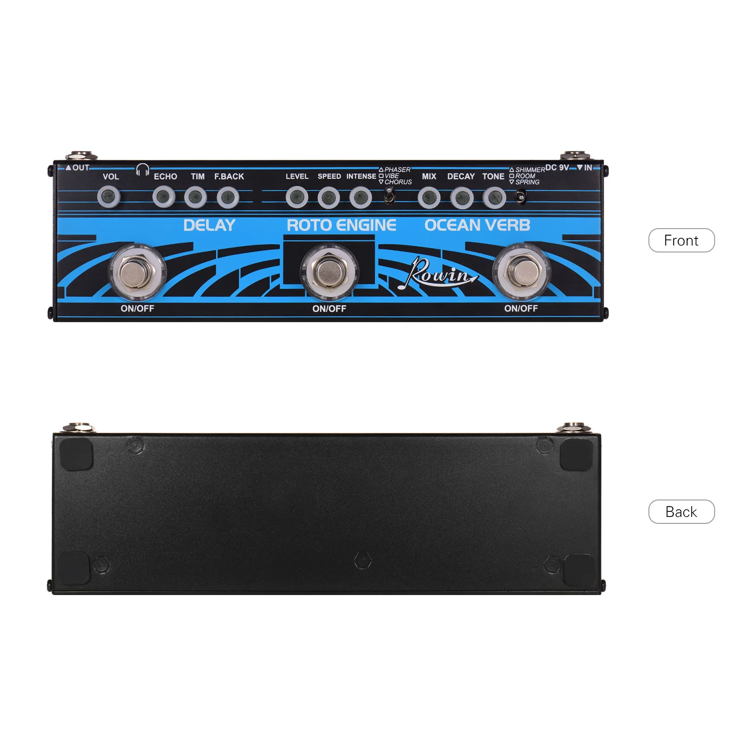 Двигатель Toto: 3 режима-фазер: аналоговый звук, который окружает ваше вращение, делая очень чудесный поворотный эффект, богатый и глубокий; Vibe: 60s классический Реверсивный звук, обеспечение широкого спектра эффекта реверберации; Хор: высококачественный стандартный хор, с теплым и психоделическим эффектом хора. С уровнем, скоростью и интенсивными ручками управления.