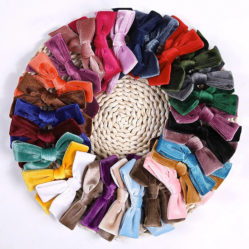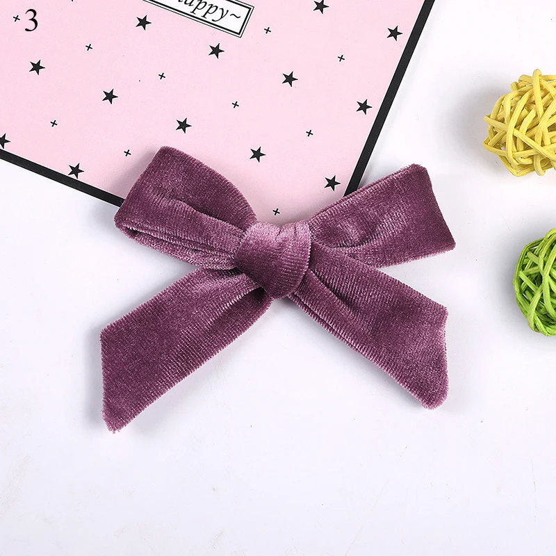 3.7" Kids Velvet Knotted Bow Hair Clip Solid Color Baby Hairpin Girls Barrettes