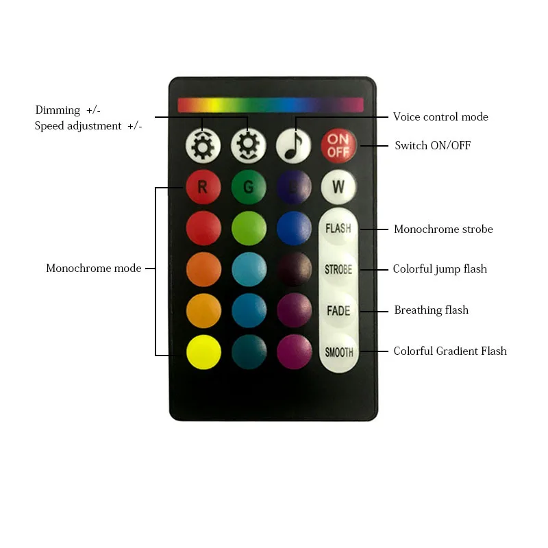 3. Функция атмосферной лампы: красный, синий, зеленый, розовый, желтый, синий, зеленый, белый, всего 15 цветов, мигание, прыжки, выцветание.