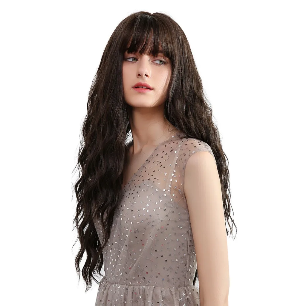 Женская мода Синтетические волосы смешанные черные коричневые тонкие челки с вьющимися волосами