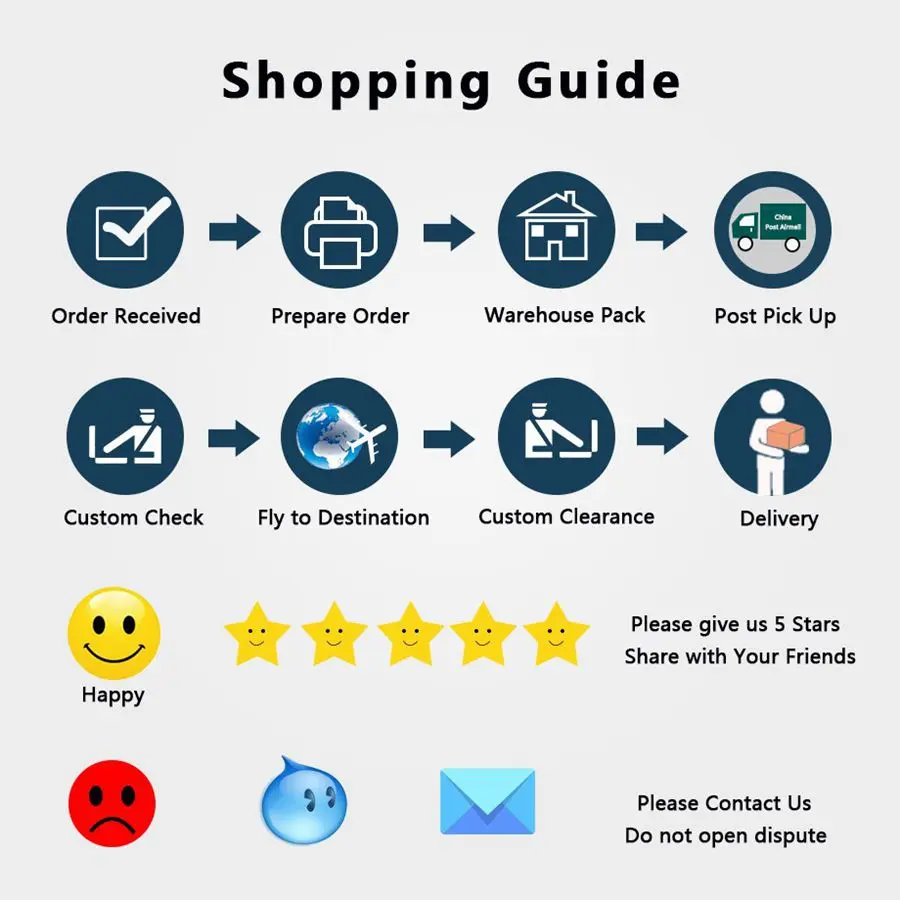 1. Мы быстро отправим товар. Товар будет отправлен в течение 7 рабочих дней с момента получения оплаты. 2. Если операция находится в Китае, время доставки может отличаться, особенно во время праздничного сезона. Пожалуйста, отнеситесь к этому с пониманием. 3. Если вы не получили посылку в течение этого периода, пожалуйста, свяжитесь с нами. Мы отследим отправку и свяжемся с вами как можно скорее. 4. Мы, продавец, не несем ответственность за импорт, покупатель несет за это ответственность. Любой спор, вызванный этим, является неразумным. Пожалуйста, отнеситесь к этому с пониманием.