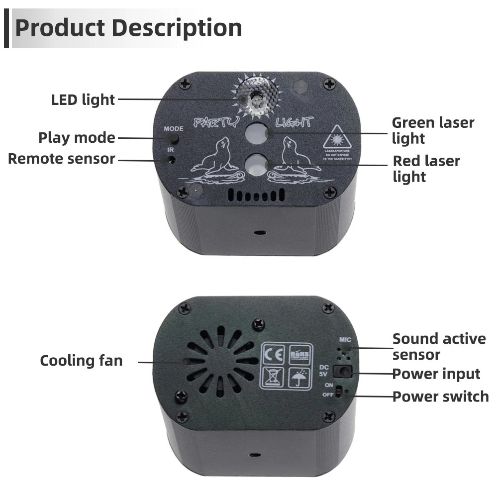 Этот мини-сценический свет предназначен для использования в помещении, имеет Блестящий цветной луч, который делает вашу комнату волшебной и замечательной. Подходит для семейных встреч, дискотек, танцевальных залов, КТВ, баров, сцены, отелей, ночных клубов, банкетов, игровых площадок и т. д.