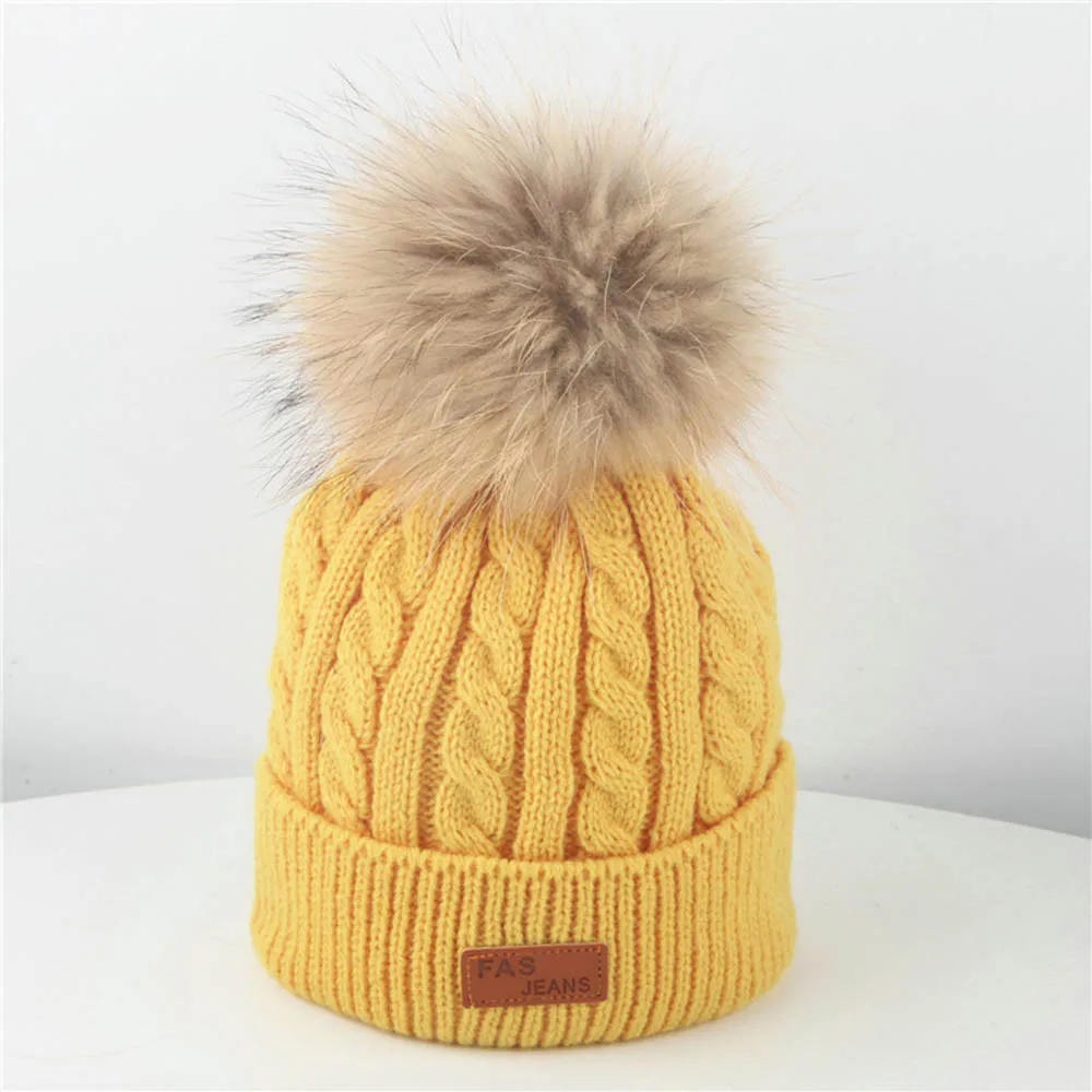 Зимняя вязаная шапка для маленьких девочек и мальчиков, шапка с помпоном для волос