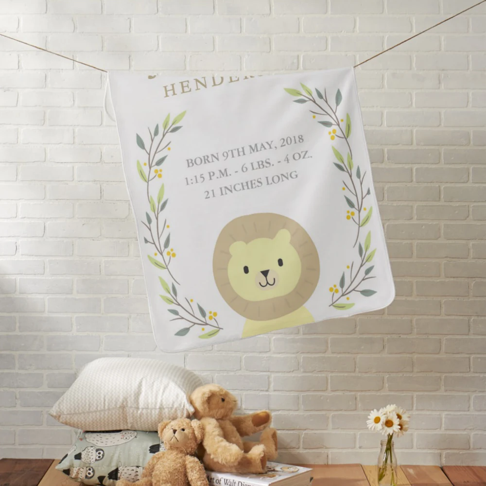 Product Name: LVYZIHO Custom Woodland Forest Fox/Lion/Bear/Giraffe Birth Stats Baby Nursery Blanket- 30x40/48x60/60x80 Inches - Fleece Blanket