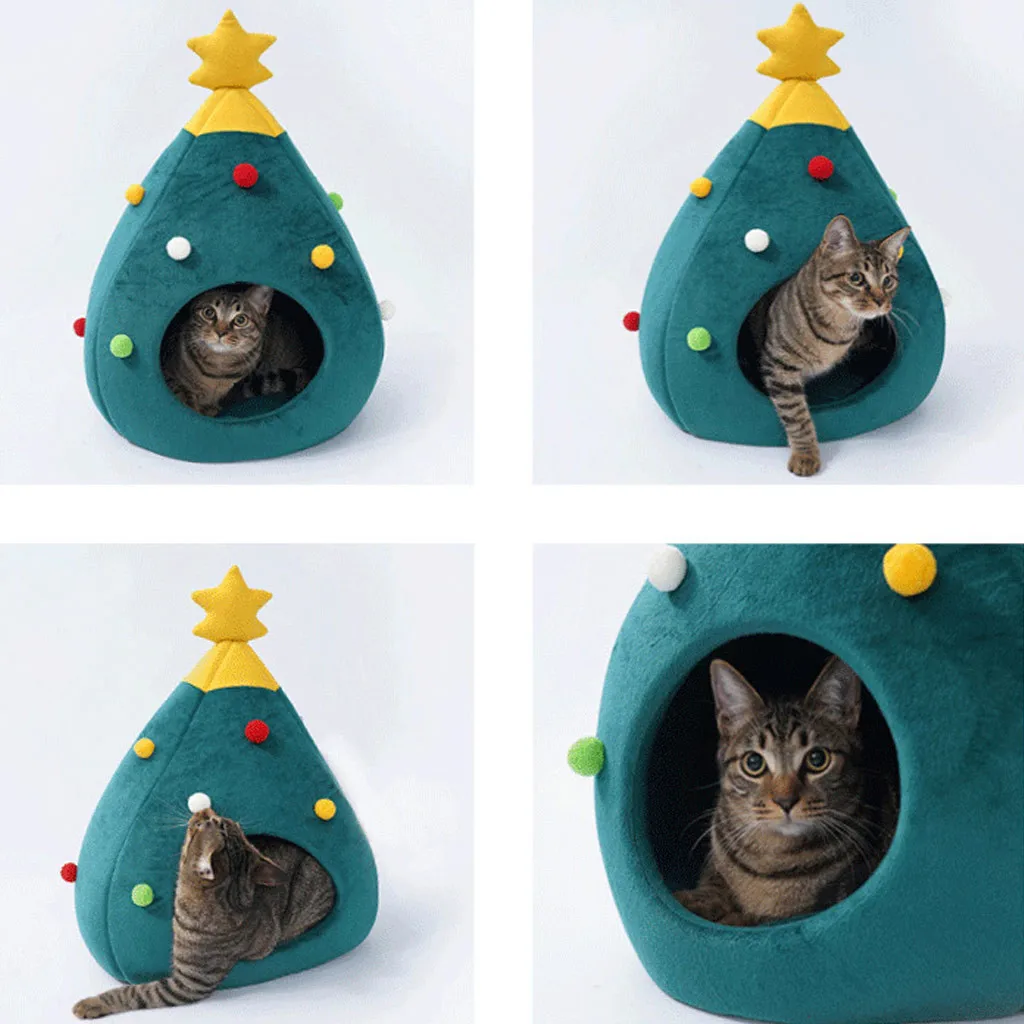 Рождественский теплый мягкий зимний помет для кошекМилый кошачий домик полузакрытый