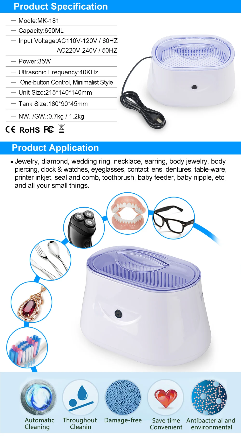 Granbo очки стоматологические запчасти инструменты для маникюра Ультразвуковой очиститель 600 мл 35 Вт светодиодный дисплей сенсорный экран цифровая ультразвуковая ванна