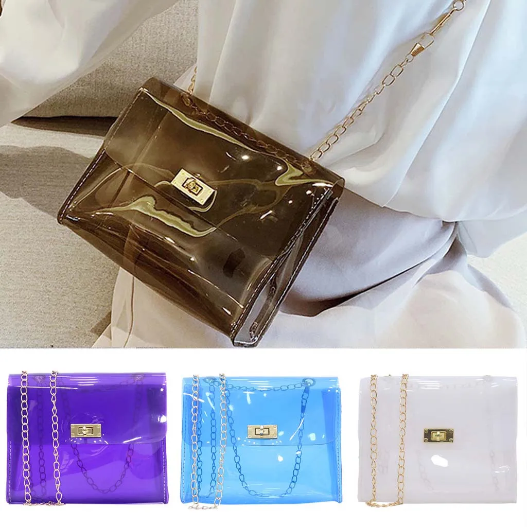 Женская модная прозрачная сумка через плечо, Желейная сумка-мессенджер, одноцветная сумка
