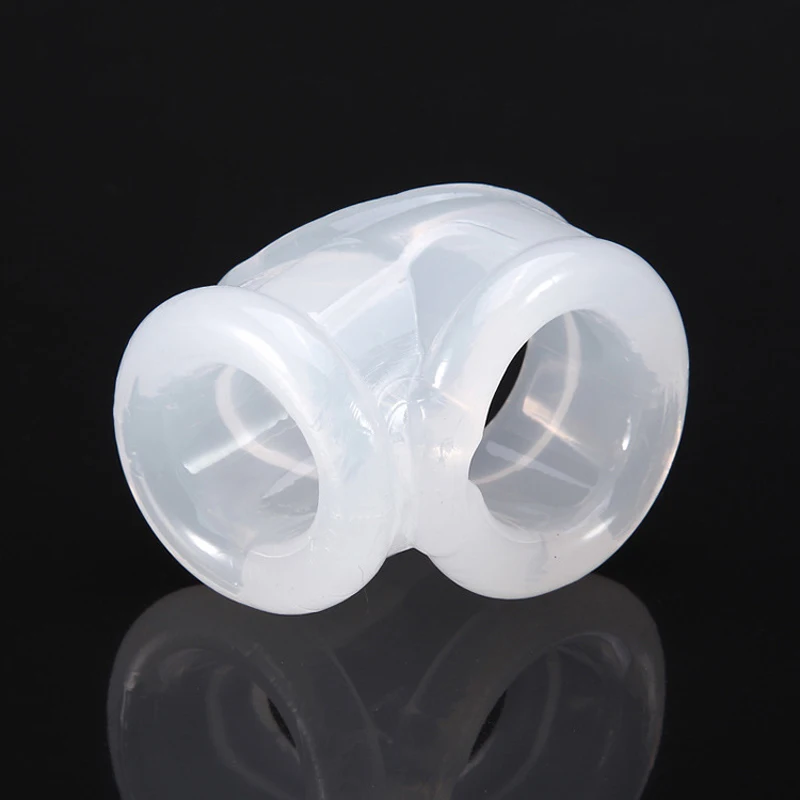 Верхнее кольцо помогает сохранить кровоток для усиленной эрекции. Просто проденьте член через верхнее кольцо и наденьте нижний мешочек поверх мошонки. Камера дает как раз достаточно, чтобы подогнать над носителем, при этом оставаясь достаточно твердой, чтобы сохранить вещи интересными. Этот отклоняющийся мешок мошонки создает ощущение легкого давления, а также удерживающее ласк к коже носителя. Материал: TPE Цвет: черный/прозрачный (как на изображении) Размер: подходит для всех размеровПосылка входит: 1 кольцо для мошонки