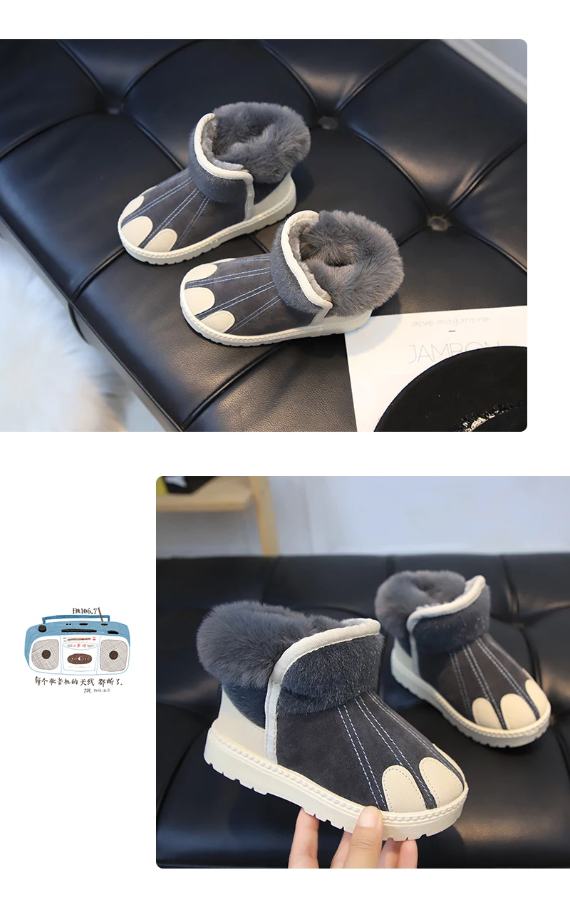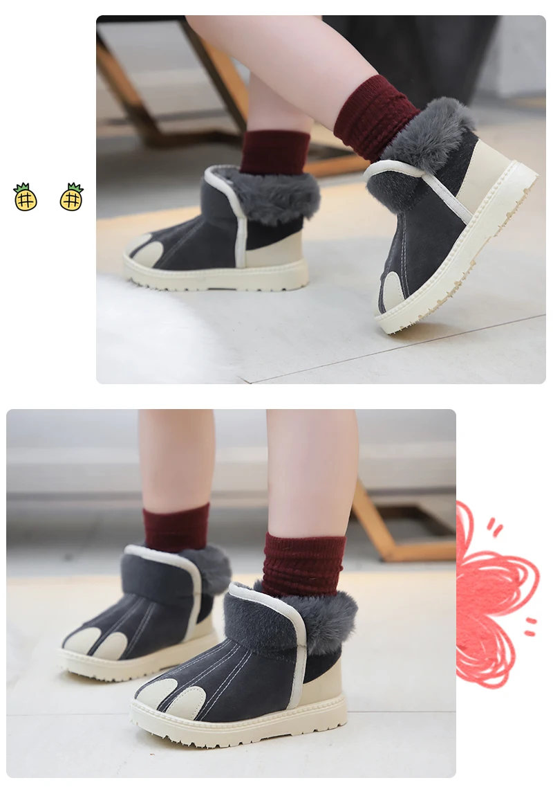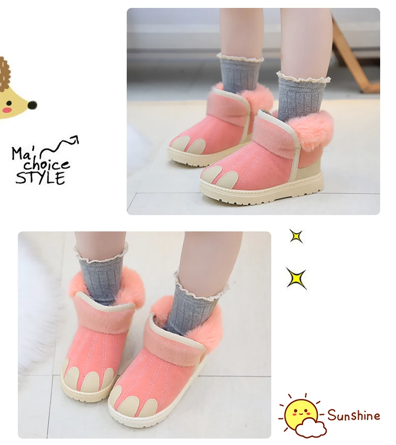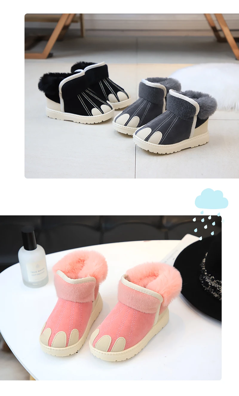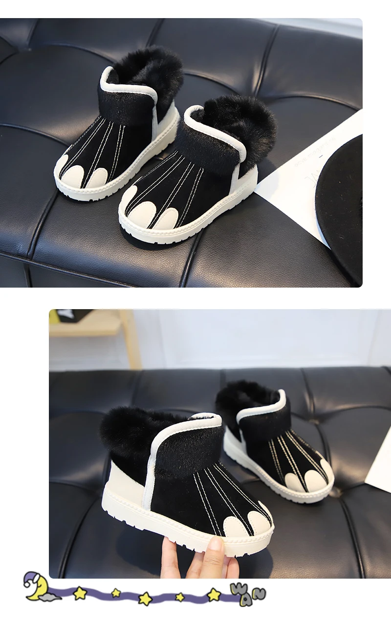 Войлочные сапоги, 2019, Корейская зимняя обувь для девочек, ботинки для мальчиков, детские теплые плюшевые ботинки принцессы с кошачьей лапой, детская обувь для девочек