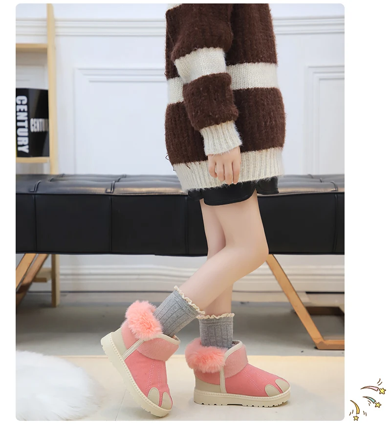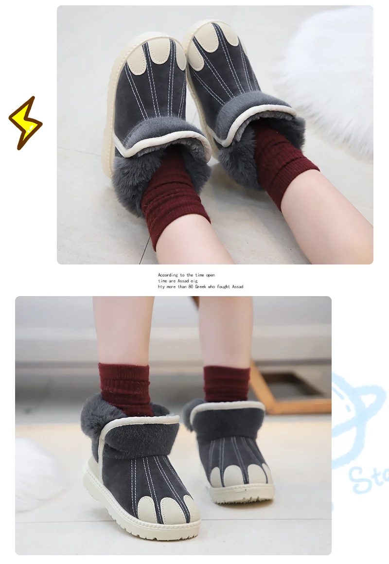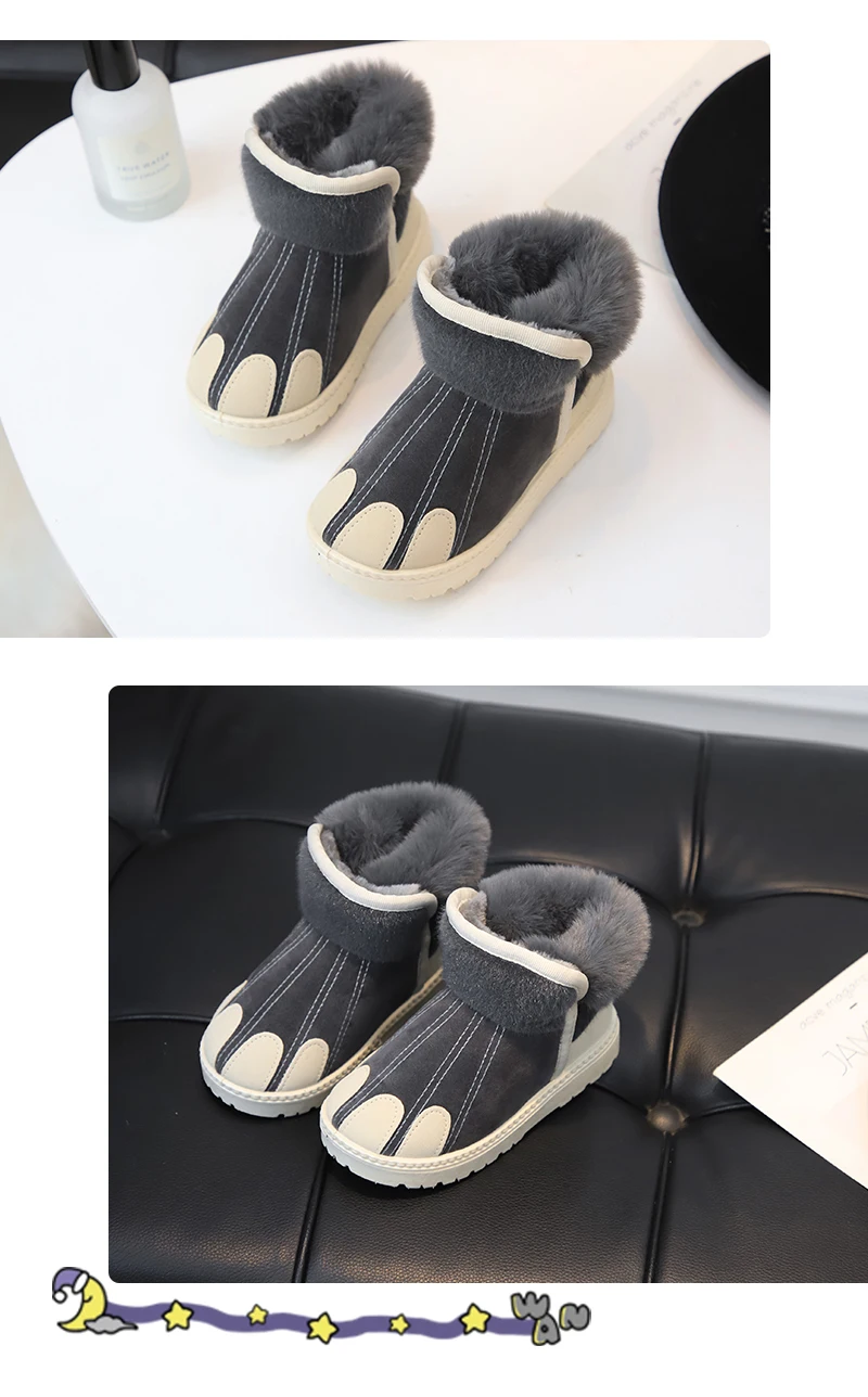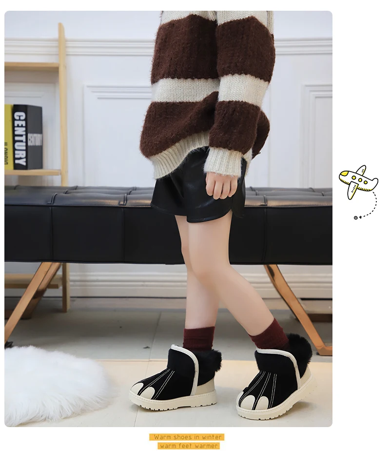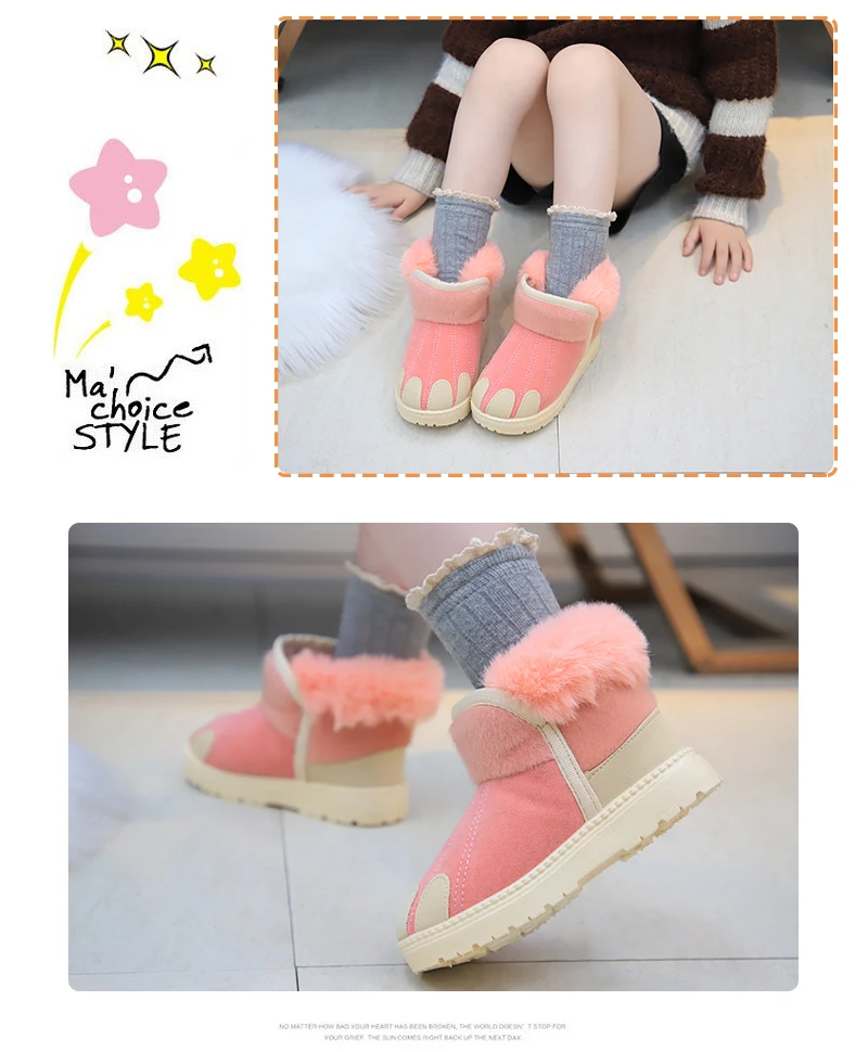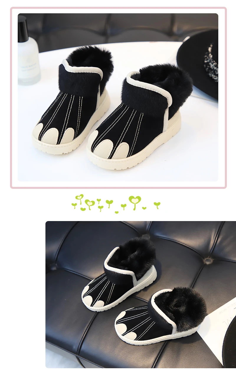 Войлочные сапоги, 2019, Корейская зимняя обувь для девочек, ботинки для мальчиков, детские теплые плюшевые ботинки принцессы с кошачьей лапой, детская обувь для девочек